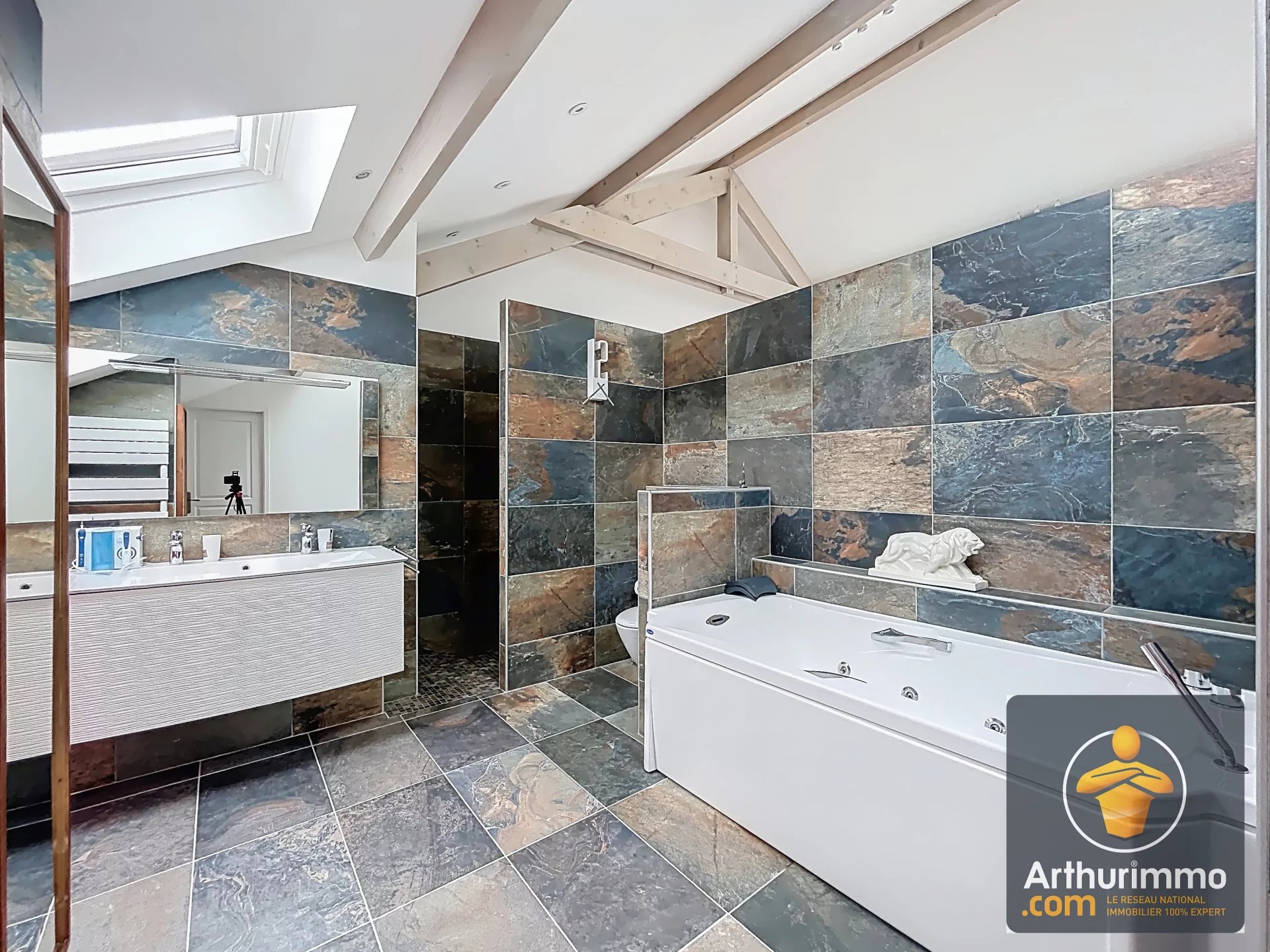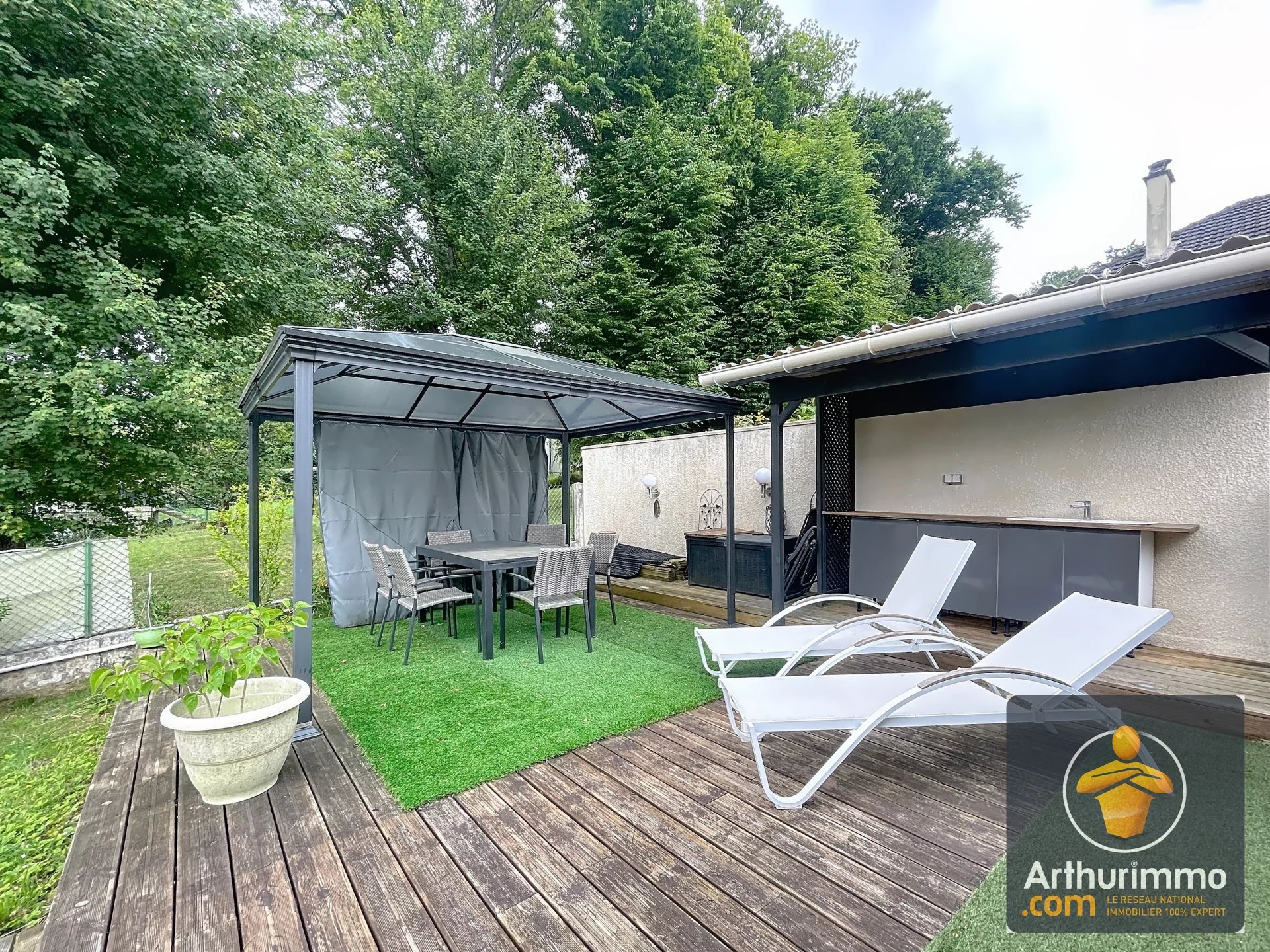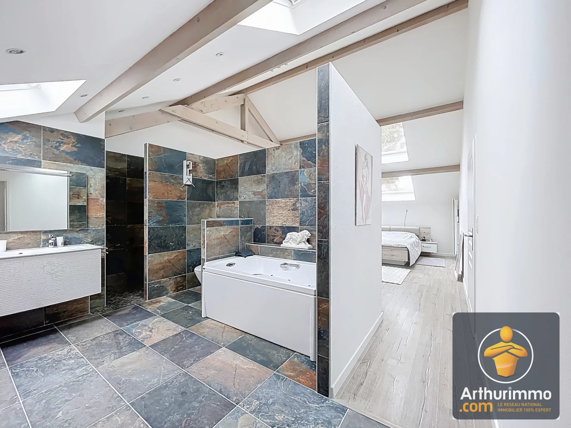 Il y a des maisons qu’on visite, et d’autres qu’on vit. Celle-ci fait clairement partie de la seconde catégorie. Nichée dans un secteur résidentiel calme à quelques minutes à pied de la gare, cette propriété unique développe pas moins de 255 m² habitables, le tout rénové avec goût en 2017. Derrière ses airs sages de construction des années 70, elle cache modernité et confort. La partie principale offre 182 m² de confort absolu. Un séjour double, spacieux, baigné de lumière. La cuisine est indépendante, fonctionnelle, et n’attend que vos petits plats maison. Deux grandes chambres vous accueillent au rez-de-chaussée, accompagnées d’une salle d’eau moderne avec un hammam intégré. Mais attendez de monter à l’étage. Là, on change de dimension. La première chambre, avec ses 27 m² et ses puits de lumière, donne l’impression de dormir sous les étoiles. La seconde, une véritable suite parentale de 45 m², est un cocon hors norme. Dressing, salle de bains, volume : c’est tout simplement une suite d’hôtel à la maison. Tout a été pensé pour le confort moderne : domotique intégrale, volets roulants électriques, fenêtres double vitrage en PVC… Un vrai bijou sur un terrain de plus de 600m2. Et que dire de sa configuration exceptionnelle ? L'entresol, loin d’être un simple espace de stockage, a été intelligemment transformé en appartements totalement indépendants. Un grand 2 pièces de 50 m² et un studio de 35 m², chacun avec entrée privative, et des prestations qui n’ont rien à envier au logement principal. C’est idéal pour loger la famille, créer un espace pro... ou tout simplement générer 1 400 € de revenus locatifs par mois. Oui, vous avez bien lu. La maison commence déjà à travailler pour vous dès le premier jour. Et parce qu’on ne vit pas qu’à l’intérieur, le terrain réserve aussi ses belles surprises : cuisine d’été, chalet de jardin, et une parcelle au calme, sans vis-à-vis, parfaite pour les longues soirées d’été. Une maison coup de cœur, un projet de vie, et une rentabilité bien pensée... Ce genre de bien ne reste pas longtemps sur le marché. Vous êtes prêts ? Nous aussi. Appelez-nous.