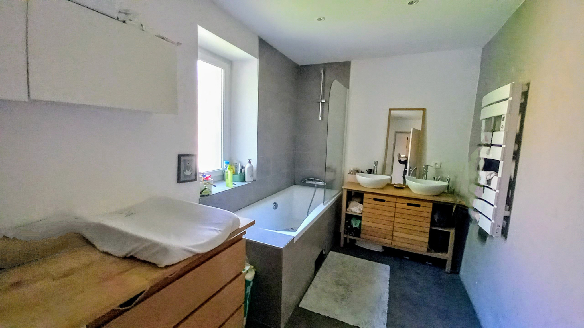 Bordeaux métropole - Bordeaux Rive droite - Lormont au coeur du vieux centre bourg dans une petite rue calme - Maison en pierre sur 2 niveaux comprenant au rez-de-chaussée une pièce faisant office actuellement d'entrée / bureau de 17 m2 . A l'étage : un grand séjour lumineux de 35 m2 avec cuisine ouverte contemporaine et équipée - deux chambres de 12,87m2 et 15,50m2 , une salle d'eau et une salle de bain. un wc indépendant et une mezzanine de 6m2 . Cette maison possède un extérieur exposé sur de 20m2.