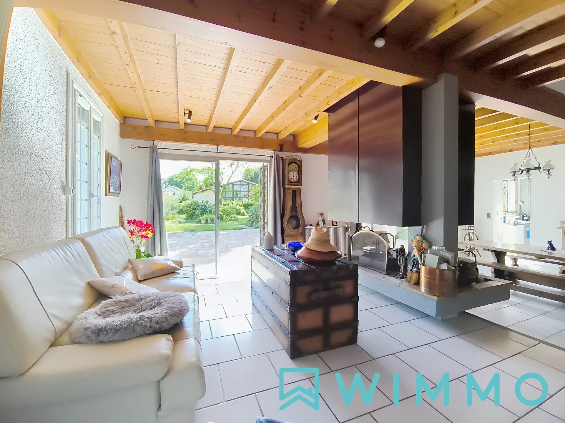 Dès l’entrée, une vaste pièce de vie de 55 m² orientée sud-ouest vous accueille, baignée de lumière et réchauffée par sa cheminée centrale. Le regard se prolonge naturellement vers le jardin arboré, orienté est-ouest, véritable écrin de verdure propice aux moments de détente et aux réceptions en extérieur.