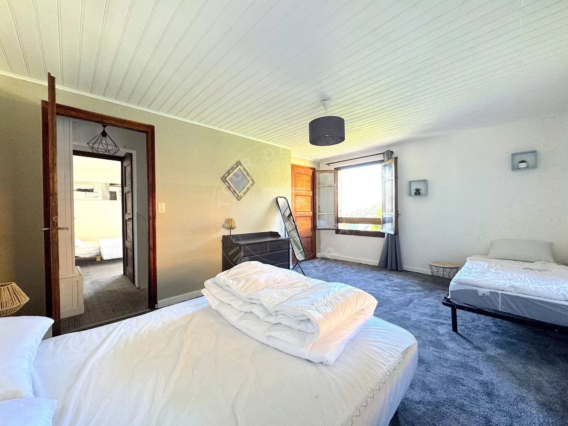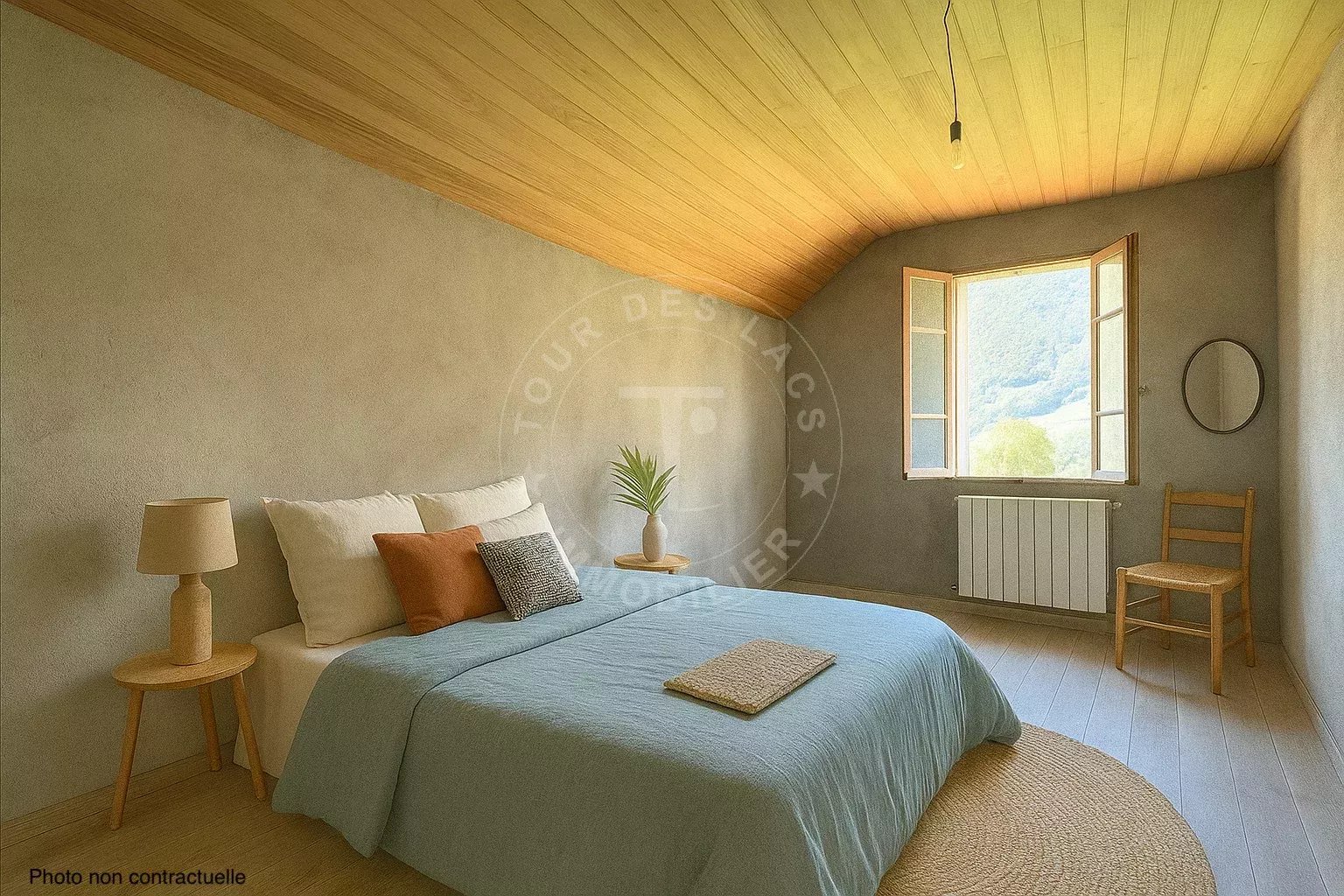 Située dans le hameau paisible de Ramponnet, à Menthon-Saint-Bernard, cette maison de village mitoyenne offre environ 76 m² habitables pour 216 m² de surface utile répartis sur trois niveaux. Elle bénéficie d’un cadre résidentiel agréable et d’une vue dégagée sur le lac et les montagnes. Le rez-de-chaussée comprend une entrée avec placard, une cuisine indépendante prolongée par un cellier, une salle d’eau, des WC séparés et un séjour lumineux. À l’étage, deux grandes chambres d’environ 18 m² offrent de beaux volumes. Les combles, d’une surface au sol d’environ 39 m², peuvent être aménagés selon vos besoins : chambre, bureau, salle de jeux… À l’extérieur, une terrasse exposée plein sud de 60 m² constitue un véritable atout. Elle offre un bel espace de vie en plein air avec une vue ouverte sur le lac et les montagnes environnantes. La maison dispose également d’un grand sous-sol avec garage, buanderie, cave et espaces de rangement. Le bien se trouve à quelques minutes à pied du centre de Menthon, des commerces, des écoles et des rives du lac. Un emplacement recherché, pour une maison à fort potentiel. Contact : Mathis UOMOBONO – Gérant Tour des Lacs Immobilier 📞 06 78 75 83 11 📩 mu@tourdeslacs.com