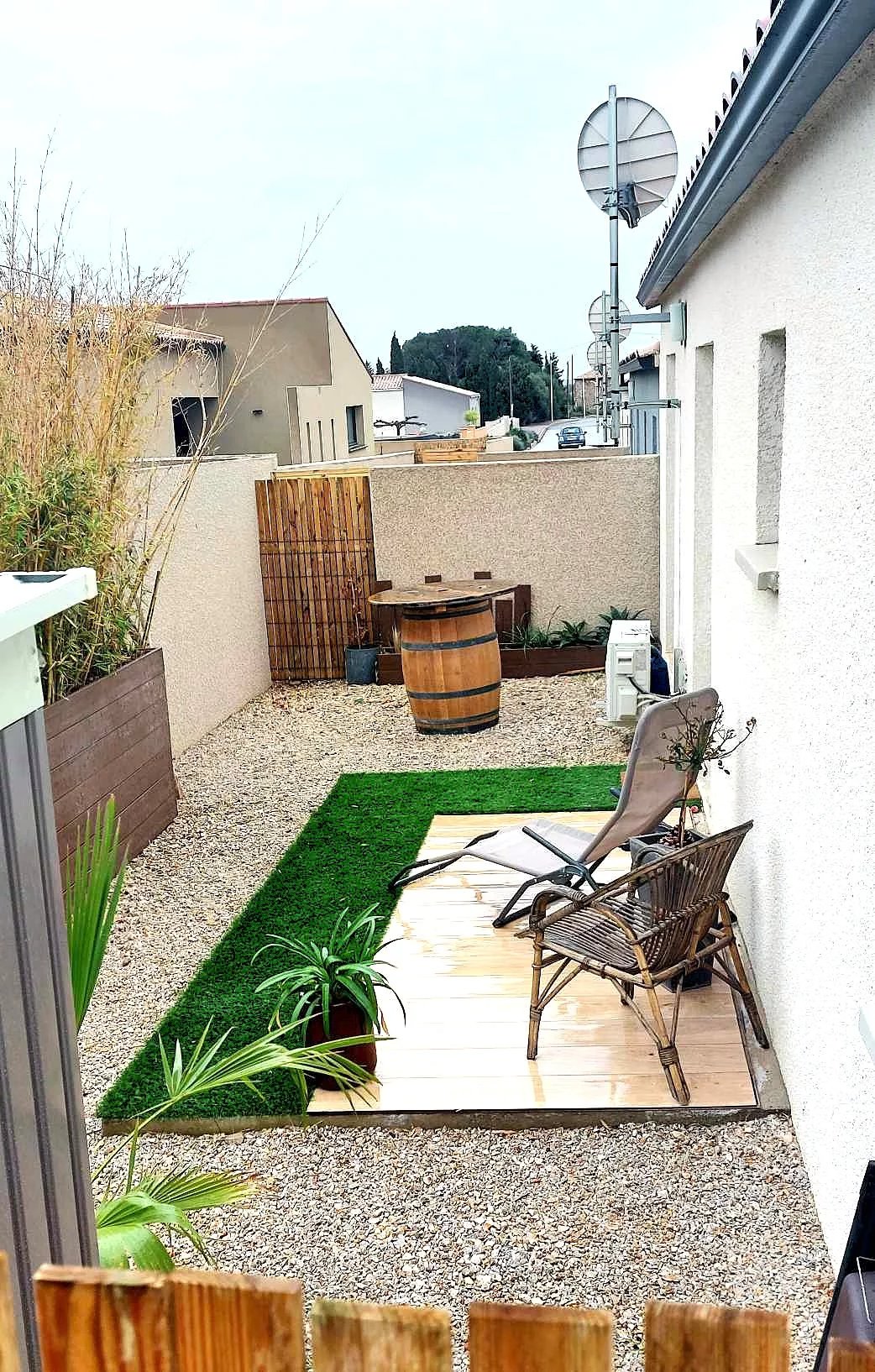 ENSEMBLE IMMOBILIER composé de 3 maisons récentes CAVES (Aude) à 6km de Leucate Lot de 3 maisons jumelées + 1 lot de terrain constructible Chaque maison a des caractéristiques suivants : Surface : 73m² 2 chambres 1 séjour/cuisine 1 cellier 1 Terrasse Valeur locative 760 € par mois (dont 20€ eau) Bail meublé d'un an