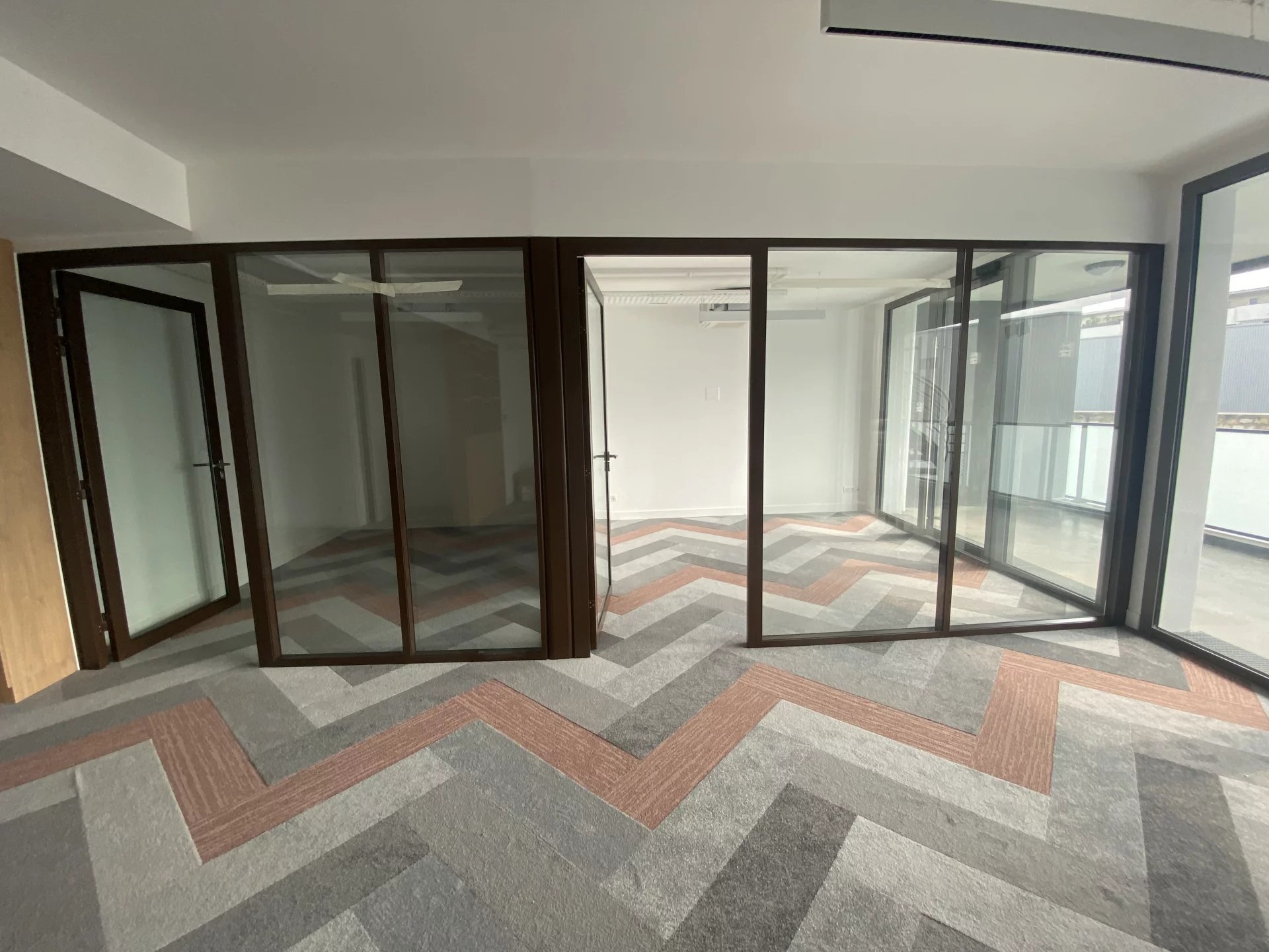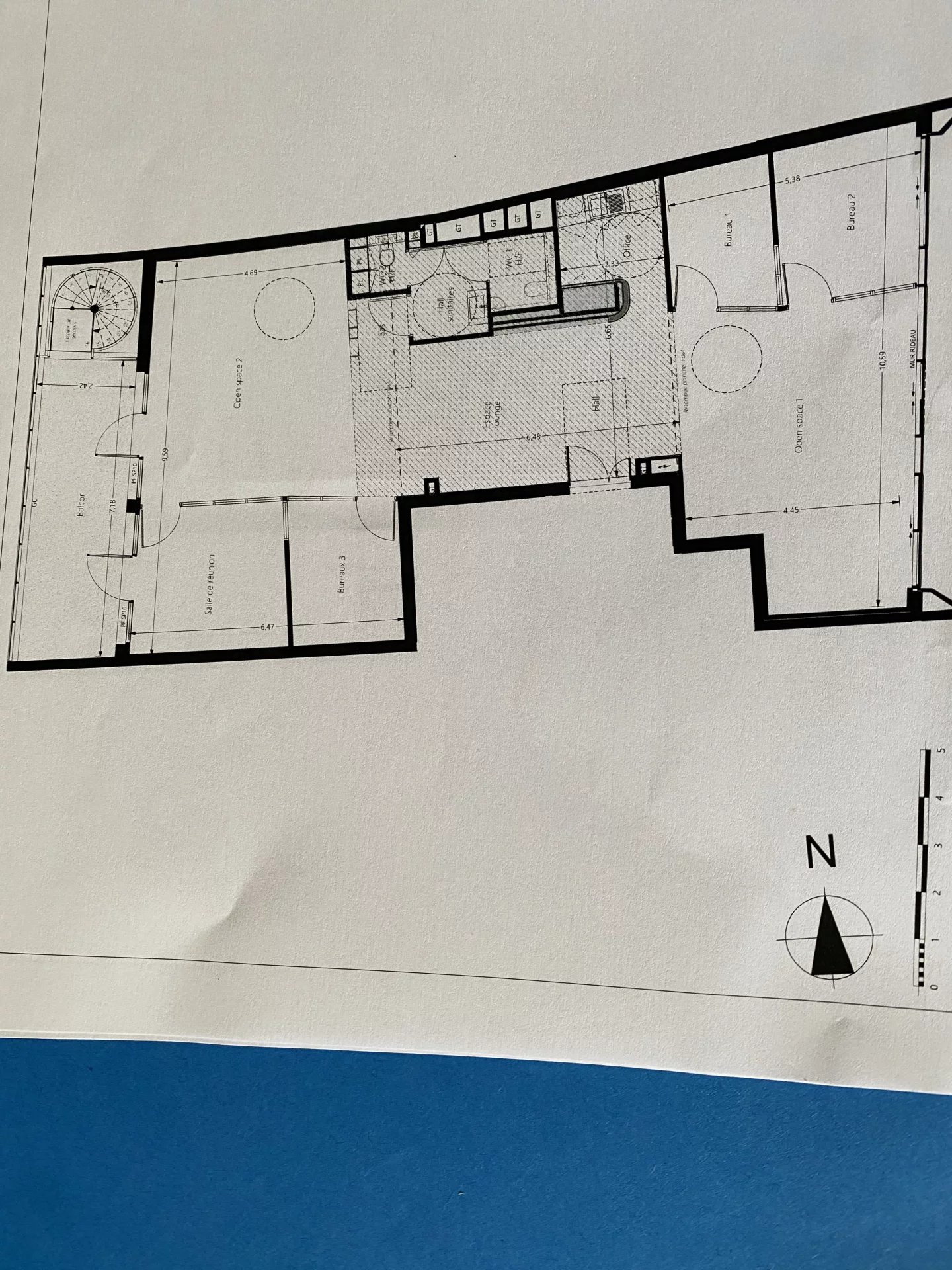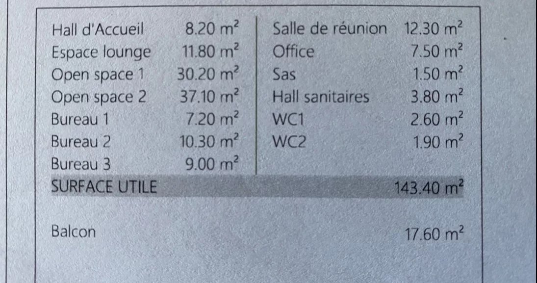 Aujourd'hui distribué de la façon suivante : 1 vaste dégagement dédié à être un espace "lounge", 2 "open space" ainsi que 4 bureaux indépendants, une cuisine aménagée et de vastes sanitaires, l'ensemble étant doté d'une terrasse de 7.18m2. Toutes les cloisons sont aisément modulables. Electricité et climatisation déjà installées.