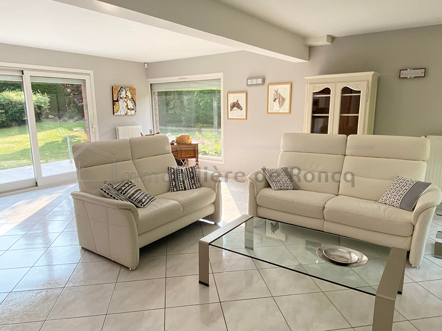 L'Immobilière de Roncq vous propose, à proximité de la Croix-Blanche dans un domaine recherché, cette lumineuse habitation d'environ 150 m² habitables sur une parcelle arborée de 686 m². Elle se compose au rez-de-chaussé d'un vaste séjour de plus de 50 m², d'une cuisine ouverte avec coin repas et un cellier. A l'étage, 4 belles chambres, une salle de bains, une salle de douches et un second WC. Terrasse, garage 2 voitures avec porte automatique et 3 places de stationnement. État technique irréprochable, à découvrir au plus vite ! (3.27 % honoraires TTC à la charge de l'acquéreur.) Copropriété de 104 lots (Pas de procédure en cours). Charges annuelles : 270 euros.