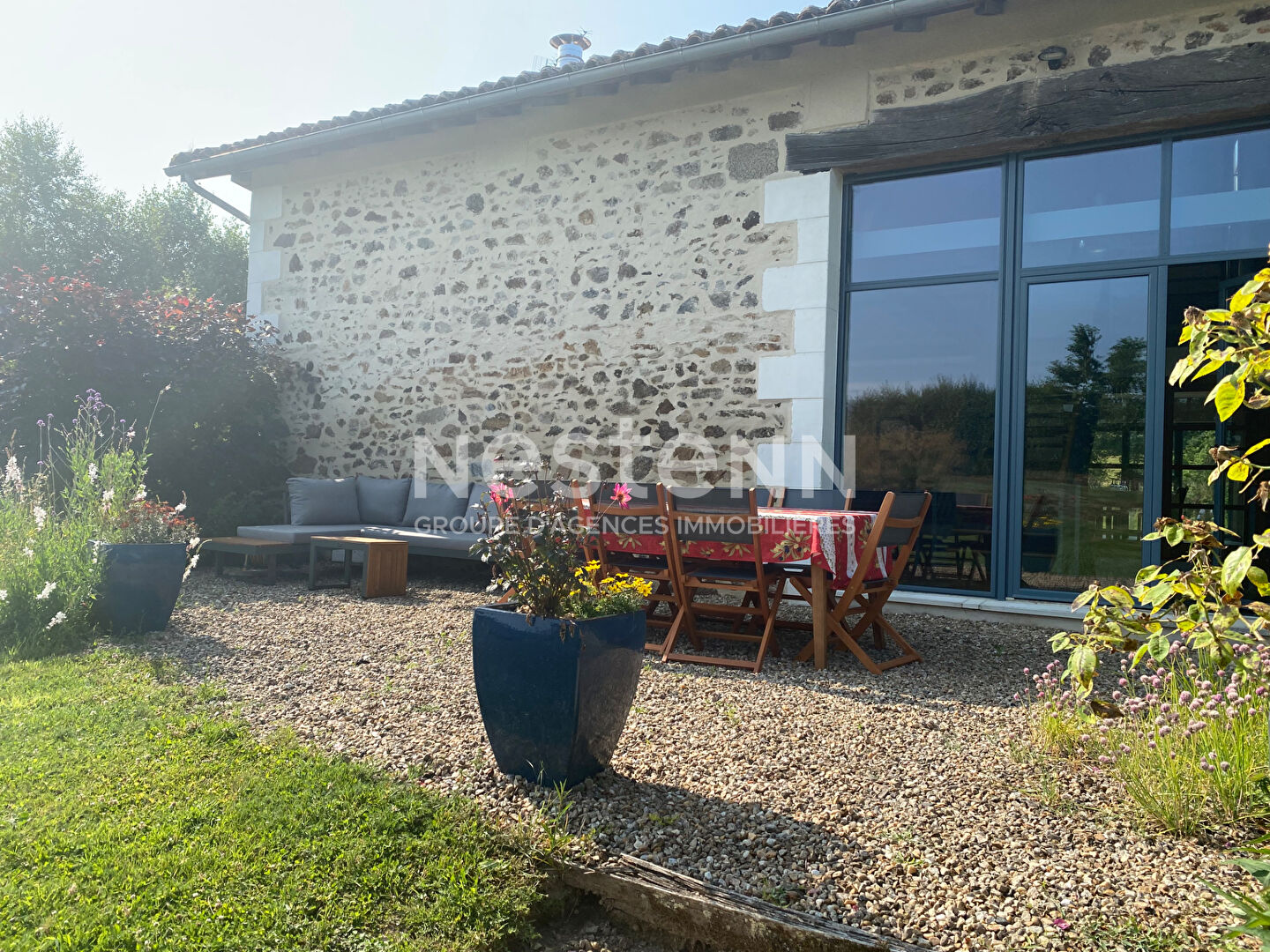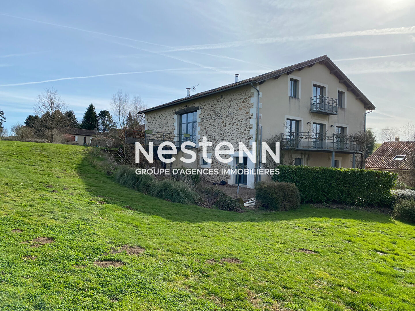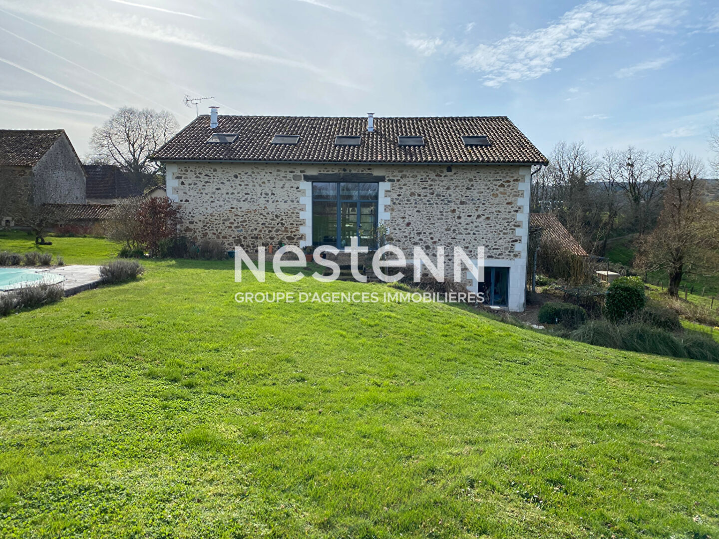 Superbe ensemble immobilier avec piscine ? Un havre de paix mêlant authenticité et modernité. Située dans un environnement calme et préservé, cette magnifique propriété de caractère offre une alliance parfaite entre le charme de l'ancien et l'élégance contemporaine. Composé d'une ancienne grange rénovée d'environ 360 m² et d'une seconde maison indépendante de 115 m², l'ensemble est idéal pour une résidence familiale de standing ou un projet de location saisonnière haut de gamme. Un cadre de vie exceptionnel avec vue panoramique Dominant un paysage ouvert, la propriété bénéficie d'une vue imprenable et d'un cadre intime, propice à la détente. L'ensemble architectural séduit par ses matériaux nobles, ses volumes généreux et sa décoration subtilement équilibrée entre style industriel et pierres apparentes, offrant une atmosphère aussi chaleureuse qu'élégante. La grange rénovée propose : 5 chambres spacieuses, dont 4 avec salle d'eau et WC privatifs, Un vaste salon de 72 m², Une grande pièce de vie lumineuse intégrant cuisine ouverte, salle à manger et coin salon, En rez-de-chaussée : entrée, buanderie, chaufferie, garage et une grande pièce polyvalente, Un espace dédié à la piscine avec vestiaire, douche et WC. Des extérieurs soigneusement aménagés Le jardin paysager, fleuri et parfaitement entretenu, entoure une piscine de belle dimension, véritable atout de cette propriété. L'aménagement extérieur invite à la détente et à la convivialité en toute tranquillité. La seconde maison d'environ 115 m², comprend : Un niveau principal de plain-pied, Deux pièces supplémentaires à l'étage, idéales pour accueillir famille, amis ou vacanciers. Une opportunité rare : vie paisible et rentabilité Cette propriété exceptionnelle offre une qualité de vie remarquable, tout en ouvrant la voie à une activité locative rentable grâce à la demande soutenue en hébergements de charme dans la région. Contactez votre agence immobilière Nestenn de Nontron pour une visite de ce bien, au ? 05 53 56 90 70 (3.91 % honoraires TTC à la charge de l'acquéreur.)