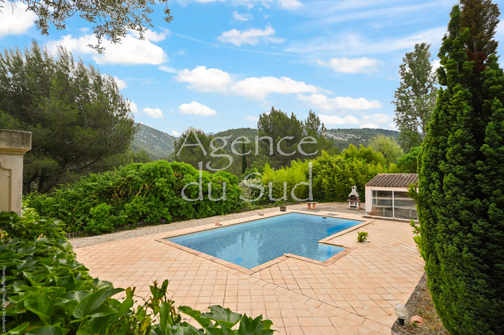 SOUS COMPROMIS - AURIOL, nichée dans un beau cadre en pleine nature sur env. 4 000 m² de terrain, cette très belle propriété en bon état est prête à vivre !! D'env. 170 m² hab répartis sur 2 niveaux, vous trouverez en plain pied un agréable hall d'entrée avec une vue plongeante directement sur le jardin, un bel espace double séjour / salle à manger donnant accès à la terrasse, la cuisine est dînatoire, aménagée et équipée avec accès sur la terrasse à l'abri également. 2 chambres spacieuses avec placards, sanitaires et wc indépendants et pour finir une suite parentale équipée de sanitaires et dressing. En rez de jardin, une seconde suite parentale avec accès directement sur le jardin et la piscine. Beaucoup d'annexes de rangement idéales pour stocker : très grand garage, atelier de rangement, cave et cellier. Une dépendance plutôt destinée à être une chambre d'appoint à l'écart de l'habitation. Un bel espace piscine avec sa plage autour et son poool house. Cette maison située au grand calme vous plonge dans un environnement très calme et sans vis à vis. N'hésitez pas à nous contacter pour toutes visites et/ou informations au 04 42 01 12 12. Théo NOIROT (EI) Agent Commercial - Numéro RSAC : - .