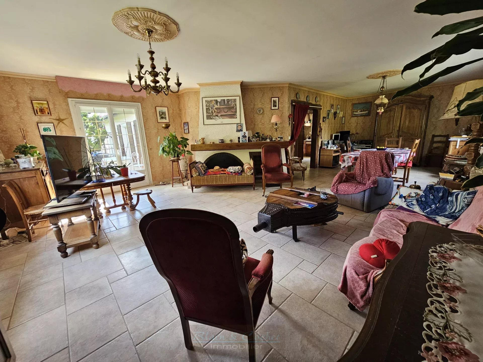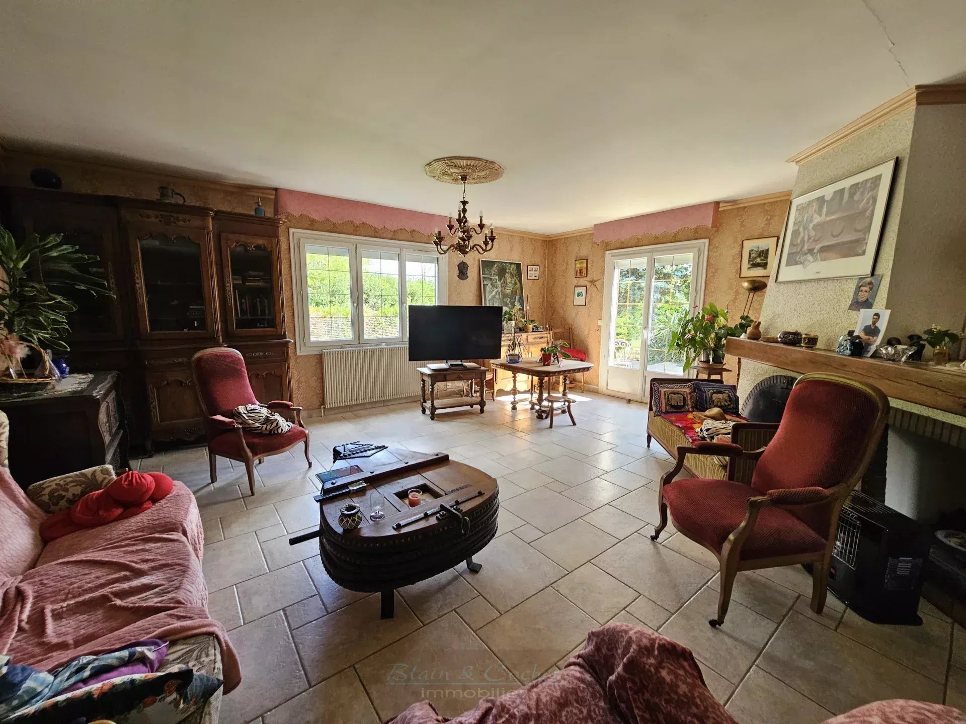 La maison est équipée d'une belle cheminée, parfait pour des soirées chaleureuses en hiver. Les fenêtres en PVC à double vitrage assurent une bonne isolation thermique et acoustique. Le salon lumineux offre une vue agréable sur le jardin, grâce à ses larges fenêtres.