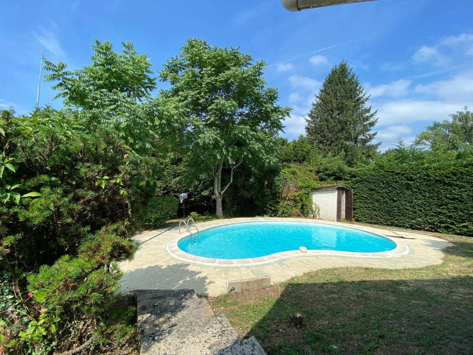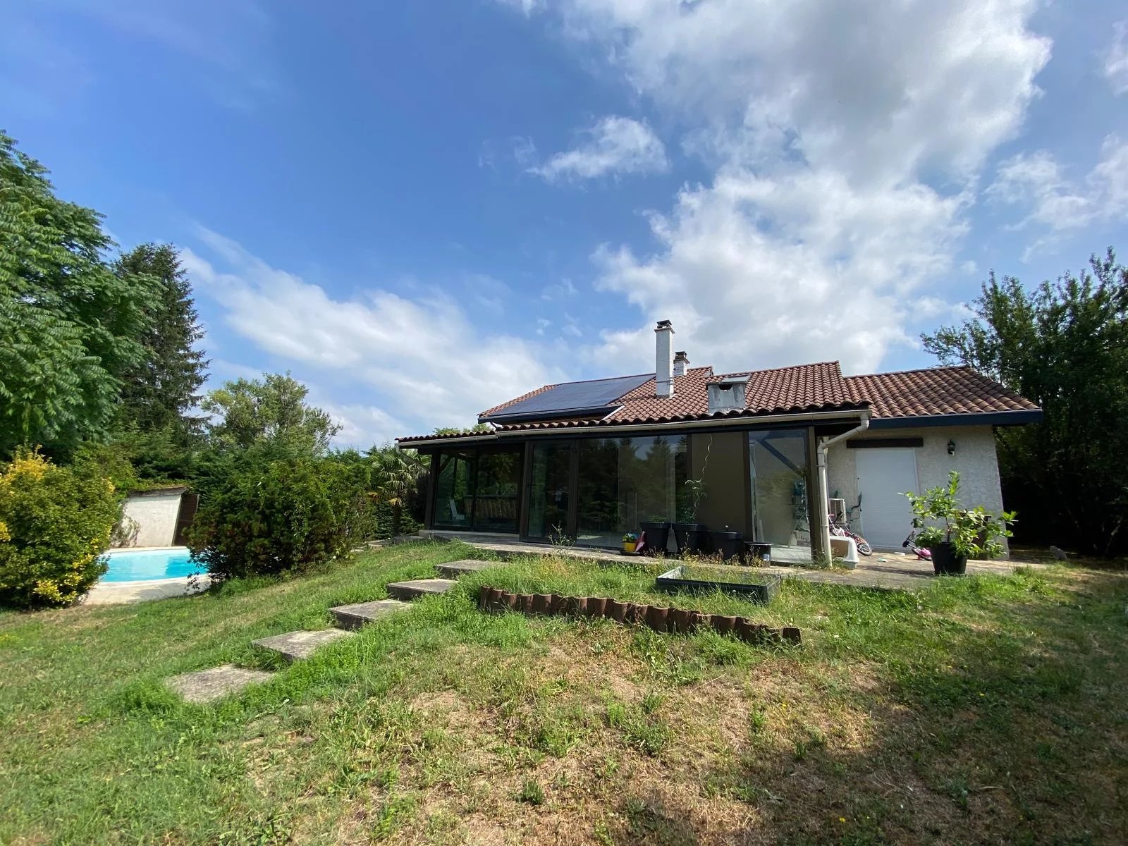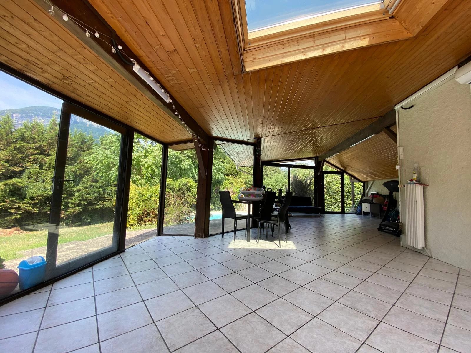 Voreppe, proche de toutes les commodités, jolie villa de 140 m², 6 pièces + cuisine équipée + véranda de 48 m² et studio indépendant. Séjour spacieux avec cheminée, 2 salles de bains, 2 WC, garage de 28 m², buanderie, atelier et cave. Le tout sur un joli terrain clos et arboré de 1570 m² avec piscine. Nouveauté exclusive à découvrir. 459 000 € BV Immobilier Tél : 06.85.10.75.81.