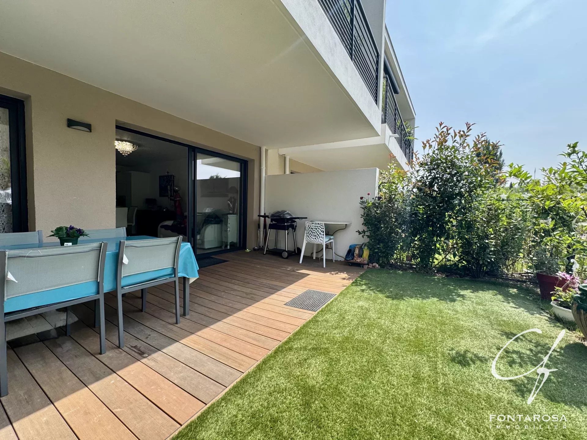Venite a scoprire questo bellissimo appartamento dalle caratteristiche moderne! Situato al piano giardino di un piccolo e intimo condominio di recente costruzione con piscina, è composto da un soggiorno che si apre su una terrazza coperta. La cucina si apre sul soggiorno ed è moderna e completamente attrezzata. Anche la camera da letto si apre sull'esterno e dà accesso al bagno con doccia. WC separato. Grazioso giardino privato. Ampio garage interrato. Le informazioni sui rischi a cui è esposto questo immobile sono disponibili sul sito web di Géorisques: georisques.gouv.fr