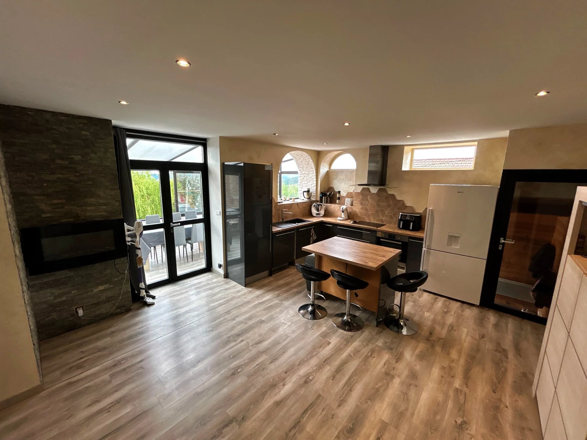Située dans une impasse sur les hauteurs de Thizy-les-bourgs, cette charmante maison mitoyenne allie calme, espace et fonctionnalité. entretenue, elle saura vous séduire par ses volumes, sa luminosité et sa vue sur les collines? Dès l'entrée, vous serez accueilli(e) par une véranda agréable avec une vue sur un cadre arboré, idéale pour profiter de chaque saison. À l'intérieur, la maison offre une grande pièce de vie conviviale avec une cuisine équipée ouverte sur le salon, parfaite pour les moments en famille ou entre amis. Une buanderie vient compléter le rez-de-chaussée, ajoutant un espace de rangement pratique au quotidien. À l'étage, l'espace nuit comprend : - 2 chambres, dont une avec placard mural intégré et l'autre avec 15m2 idéal comme chambre parental. - Une salle d'eau fonctionnelle - un accès aux combles, actuellement aménagés en débarras. À l'extérieur, vous profitez pleinement des beaux jours grâce à une spacieuse terrasse de 55m2, parfaite pour les repas en famille ou moments de détente en pleine air. côté annexes, cette maison dispose également : - un garage - de plusieurs dépendances, idéales pour stocker ou aménager selon vos besoins. Le DPE passera en D dans les prochaines semaines, car des travaux ont été réalisés, notamment la pose d'une clim réversible. Un bien a visiter sans tarder, offrant un excellent rapport qualité prix, que ce soit pour une résidence principale, une maison familiale ou un investissement locatif.