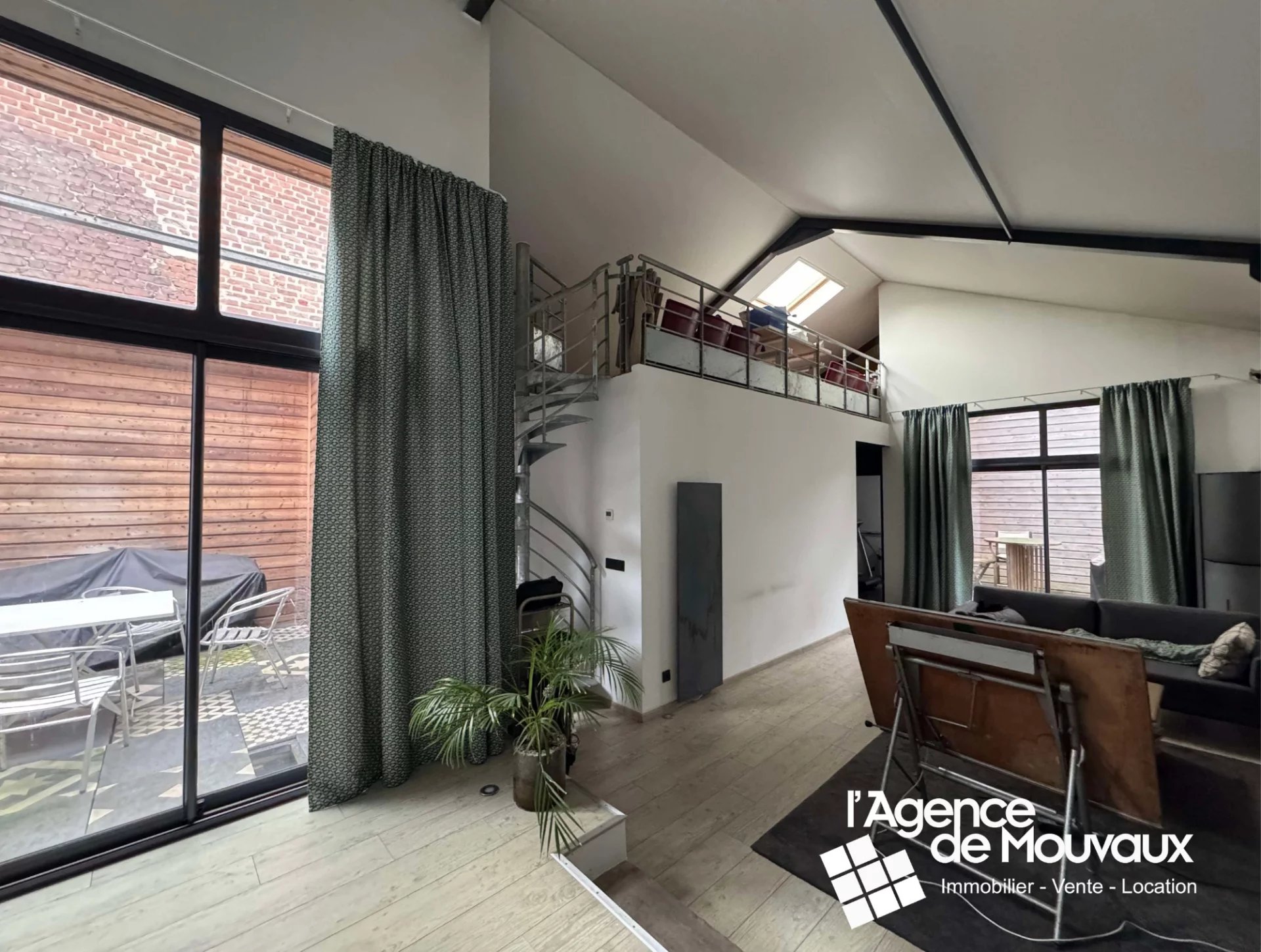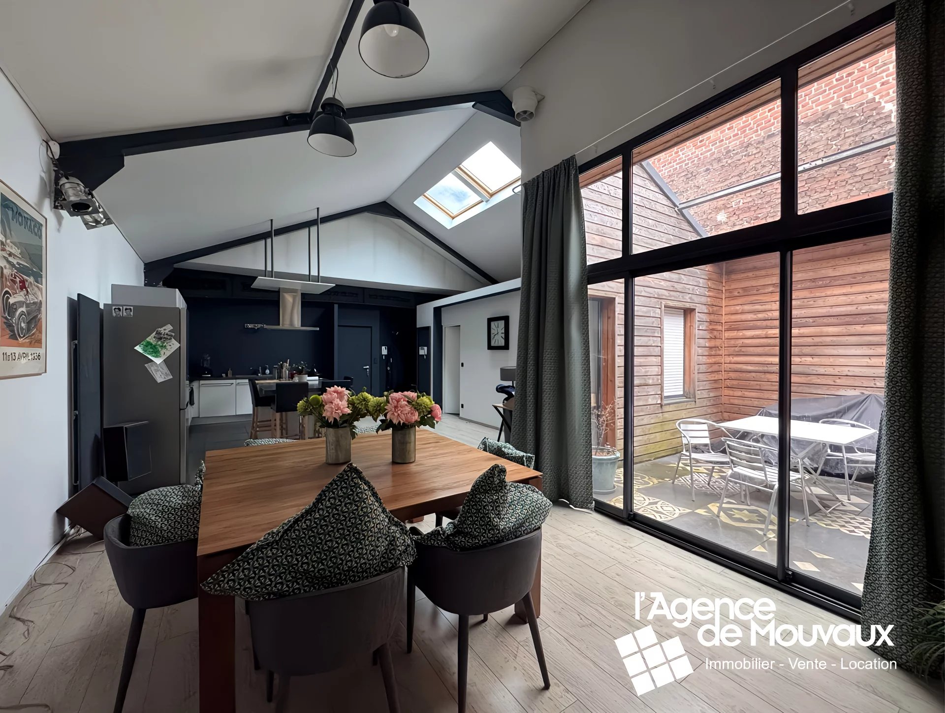 Mouvaux, secteur Vauban – Proximité immédiate du tramway Faidherbe et des toutes les commodités. L'Agence de Mouvaux vous présente ce superbe loft plain-pied, offrant 137 m² habitables, alliant espace, confort et modernité. Ce bien se compose d’une grande pièce de vie de 70m² avec poêle à bois, une cuisine ouverte entièrement équipée avec son espace repas, le tout donnant sur deux terrasses sans vis-à-vis, idéales pour vos moments de détente. Côté nuit : deux chambres confortables de 12 et 15 m² (dont une avec salle de douche), un bureau pouvant servir de chambre d’enfant, ainsi qu’une salle de bains avec baignoire et douche à l’italienne. À cela s’ajoutent un espace mezzanine polyvalent, une buanderie, un cellier, et un grand garage sécurisé, offrant un espace idéal pour stationner vos véhicules ou pour vos besoins de rangement. Côté technique: il est équipée du chauffage électrique, du double vitrage et du tout à l'égout. Indépendance totale : ce loft ne fait partie d'aucune copropriété et ne comporte aucune charge. Bien rare et unique sur le secteur, à découvrir a plus vite ! Pour plus d'informations, contactez Gautier JANSSENS au 07.60.42.35.86. L'AGENCE DE MOUVAUX 4 Bd de la Marne 59420 Mouvaux Date de réalisation du diagnostic énergétique : 04/12/2024 Consommation énergétique : 188 kWh/m²/an (D) Emission de gaz à effet de serre : 6 CO2/m²/an (C) Montant estimé des dépenses annuelles d'énergie pour un usage standard : entre 1790 € et 2510 € par an. Prix moyens des énergies indexés sur l'année 2021. Les informations sur les risques auxquels ce bien est exposé sont disponibles sur le site Géorisques : www. georisques.gouv.fr Le prix est indiqué frais d'agences compris pour 3.24% à la charge de l'acquéreur.