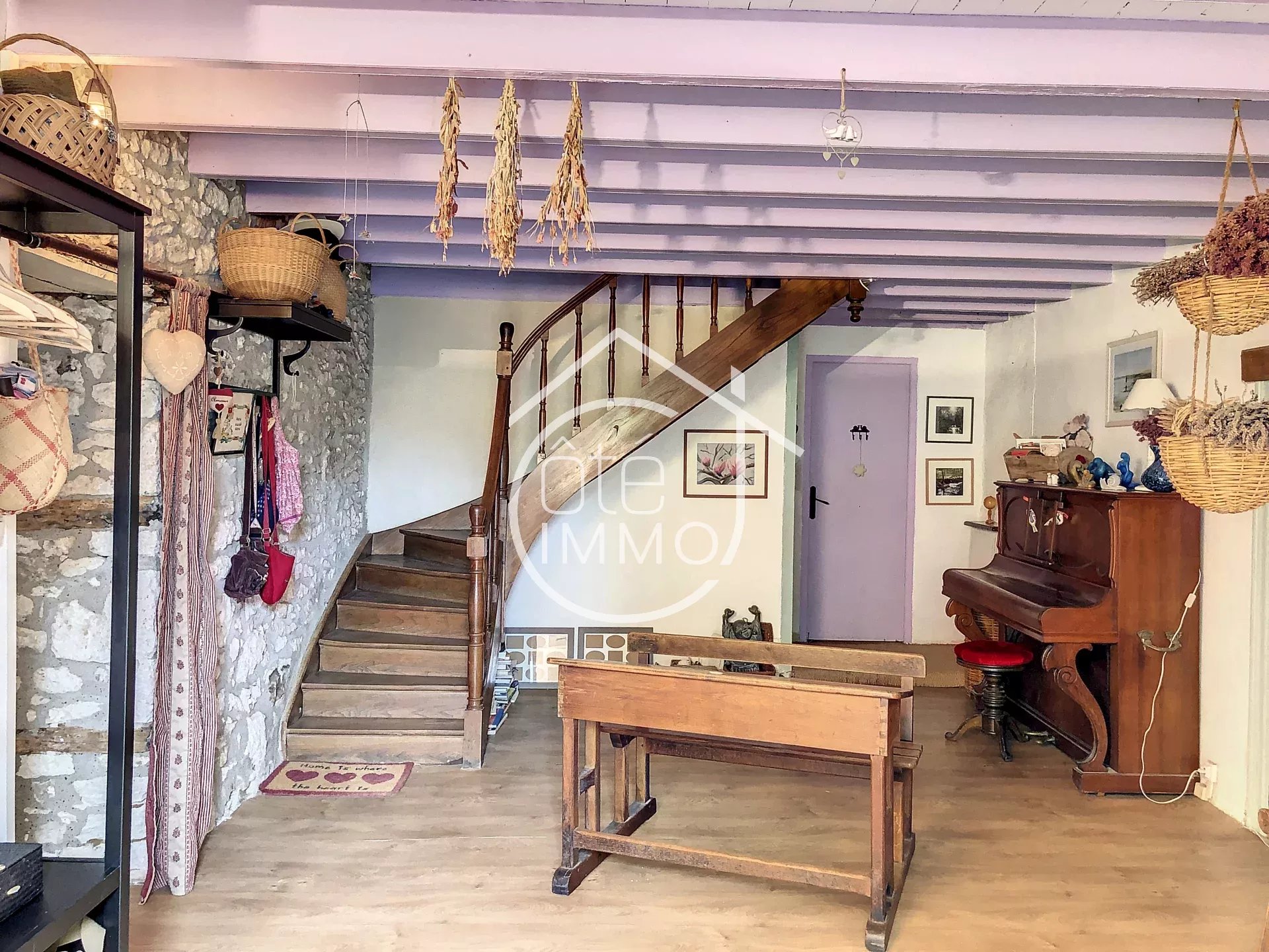 Côté Immo Pays Foyen vous présente, au cœur d’un hameau calme, cette belle propriété en pierre comprenant une maison principale de 154 m² et un gîte indépendant de 84 m², le tout sur un terrain d’environ 2 800 m². Maison principale (154 m²) Au rez-de-chaussée, une vaste entrée de 28 m² dessert un salon chaleureux de 27 m² équipé d’un poêle à bois, ainsi qu’une cuisine conviviale de 24 m². Un couloir mène à une salle d’eau d’environ 7,5 m², une buanderie et un WC séparé. À l’étage, un palier distribue trois chambres de 13 à 16 m² ainsi qu’un dressing. Gîte indépendant (84 m² évolutifs) Le gîte se compose d’une première chambre de 22 m² avec salle d’eau et WC, d’une seconde chambre avec mezzanine, ainsi que d’une salle d’eau supplémentaire. La surface actuelle de 84 m² peut être étendue grâce à l’aménagement possible d’une chambre supplémentaire de 14 m² à l’étage. Chaque chambre dispose d’un accès extérieur, idéal pour de l’hébergement touristique. Dépendances : Garage de 40 m² Atelier de 17 m² Logement attenant de 81 m² à rénover, parfait pour créer un second gîte ou un logement indépendant Grange de 100 m² Caractéristiques techniques : Double vitrage sur le gîte Simple vitrage sur la maison principale Assainissement individuel (fosse septique) Chauffage au bois (poêle) Présence d’un puits Cet ensemble offre de nombreuses possibilités : projet familial, activité touristique, résidence multigénérationnelle… Une propriété pleine de charme et de potentiel, à découvrir sans tarder.