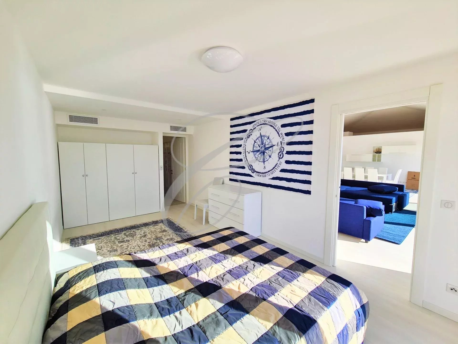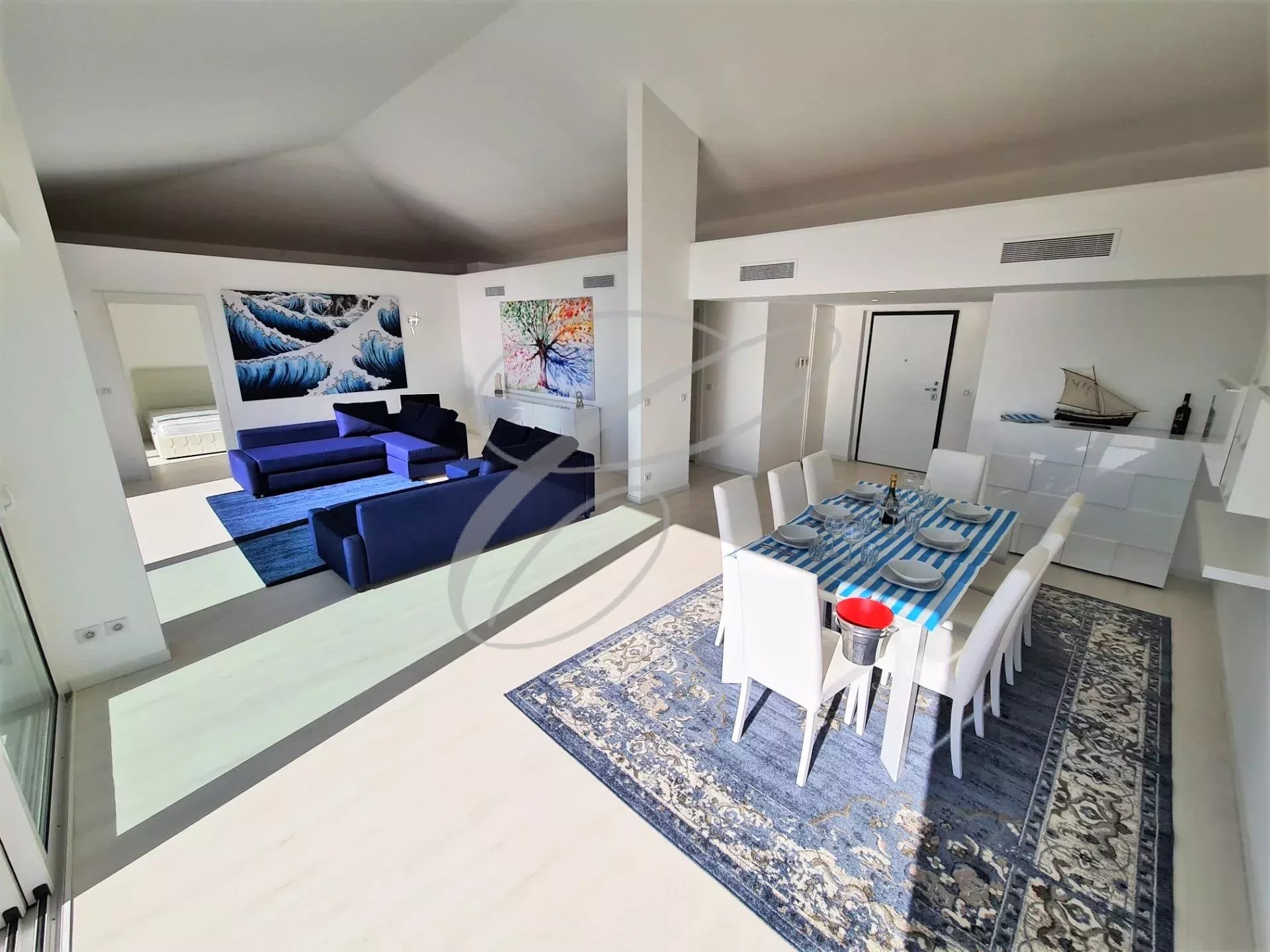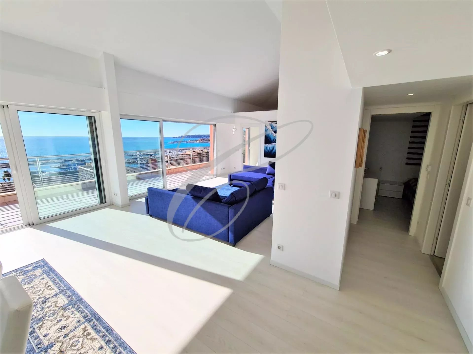 Dans luxueuse résidence neuve avec jardin et piscine, secteur calme et résidentiel, superbe penthouse de 4 pièces principales avec grande terrasse bénéficiant d'une vue mer panoramique. Entrée, double séjour avec mezzanine, cuisine indépendante, 3 chambres en suite, dressing.