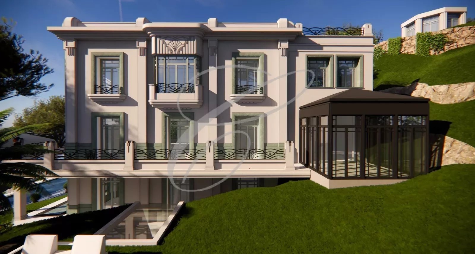 - Rez-de-jardin : 3 chambres, 3 salles de bains, dressings, cave à vin, buanderie.