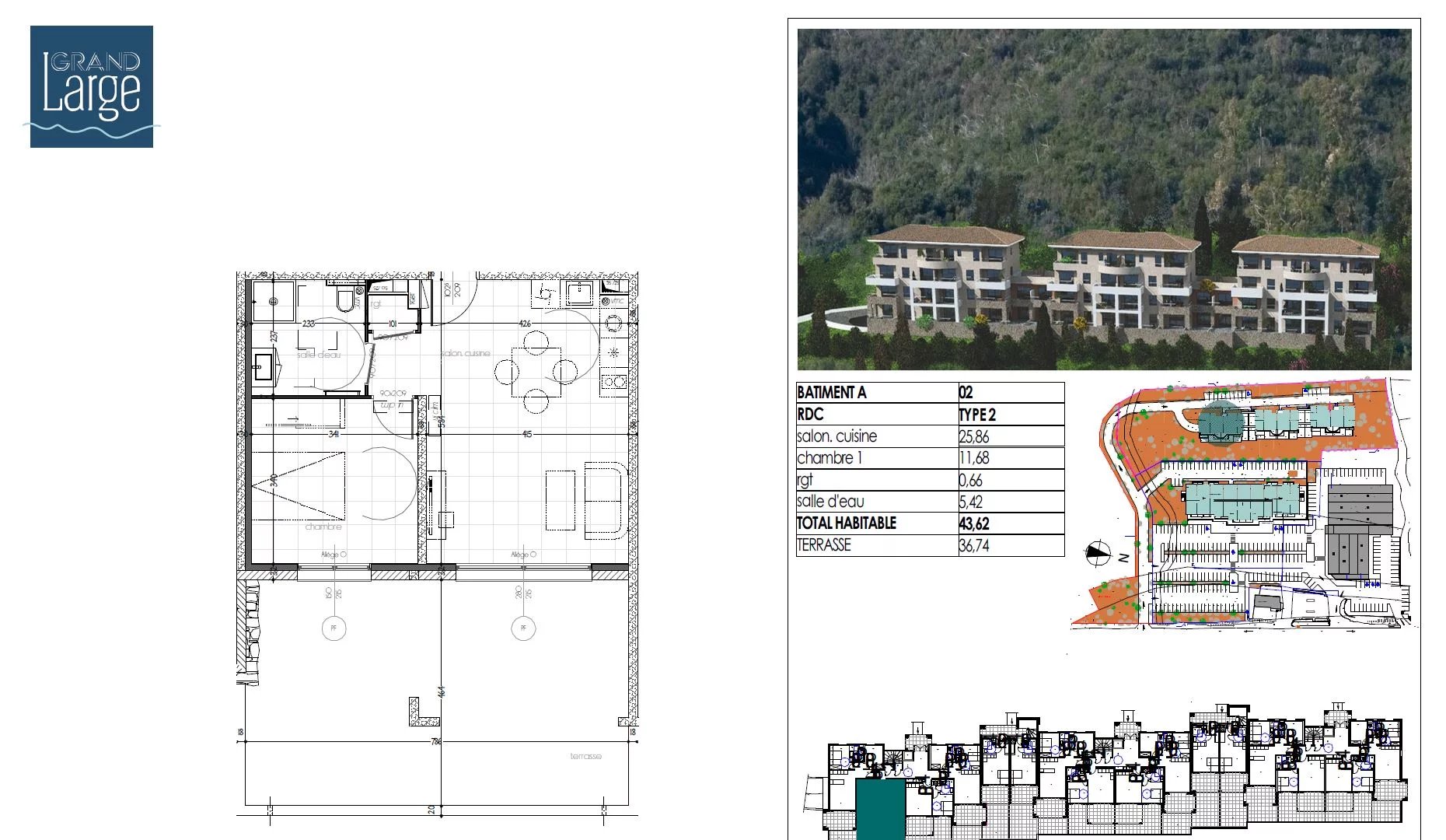 SOLENZARA FACE MER, DERNIER LOT et LIVRAISON EN COURS T2 au 1er étage avec ascenseur de 43,22m² avec une terrasse de 13,26m² et 1 parking en sous-sol. Au cœur d'un environnement idyllique, "Grand Large", une résidence de standing surplombant la mer est un ensemble de 3 bâtiments avec de nombreux commerces à proximité et la plage à une centaine de mètres à pieds. Tous les appartements sont orientés et s'ouvrent sur une Vue imprenable vers la mer. A seulement 700 mètres du centre ville, ce havre de paix face à la mer est idéal en résidence principale, secondaire ou investissement locatif saisonnier. Frais Réduits.