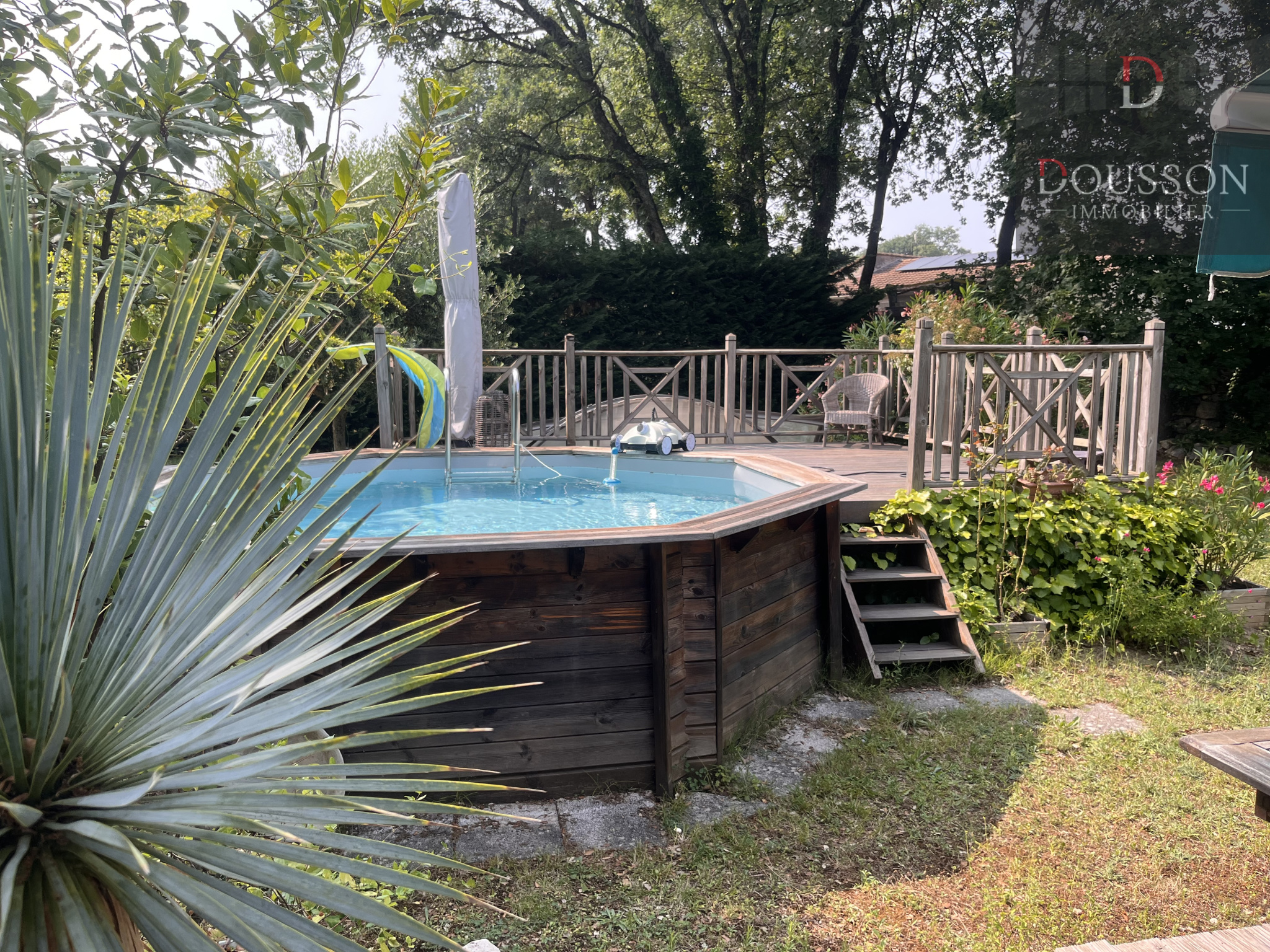 sd'eau, véranda. Possibilité d'extension de 60 m2. Piscine hors sol. Climatisation (pompe à chaleur), Forage. Dépendance de 12 m2 pouvant servir de burerau. Garage. Portail automatique.