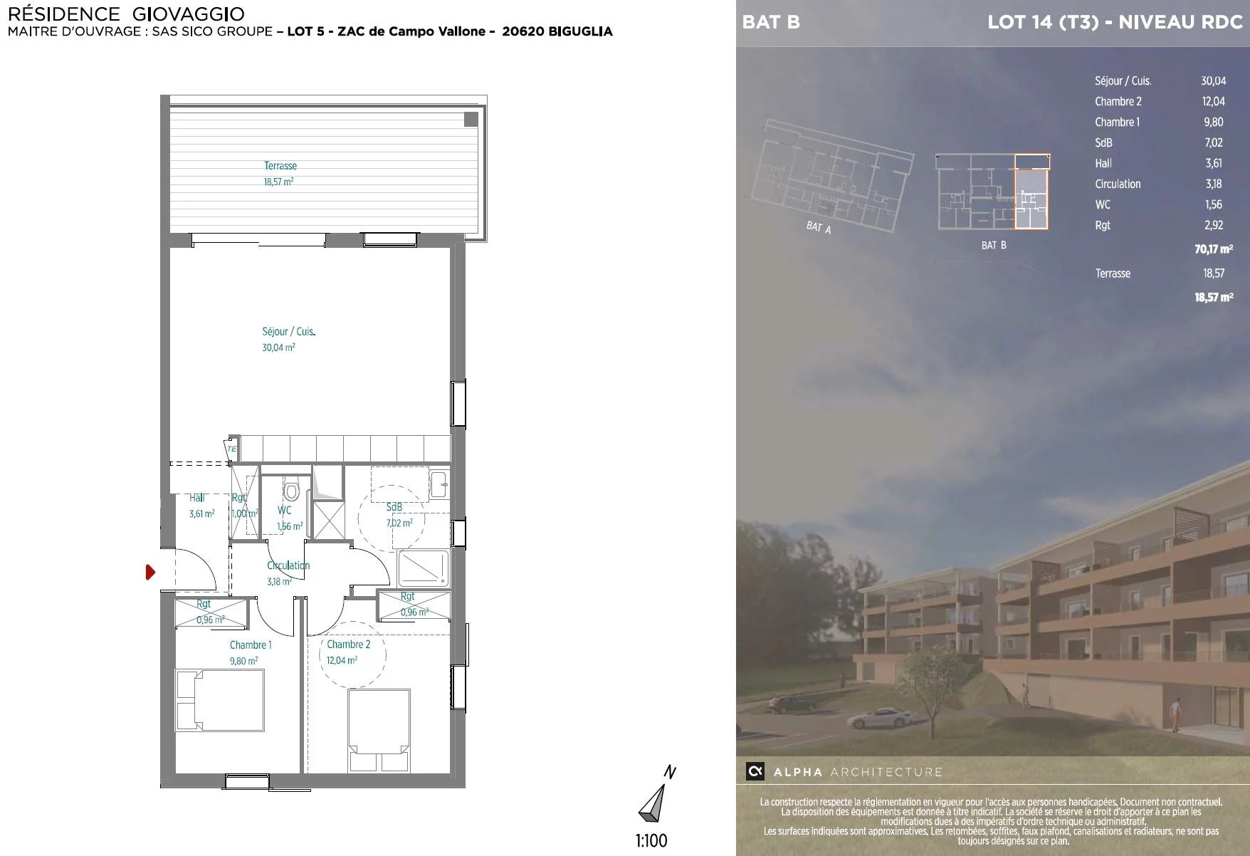 ILE ROUSSE, T3 de 70m² avec 18m² de terrasse et un parking privatif. GIOVAGGIO est une résidence de standing au calme et à taille humaine composée de 20 logements du 2 au 4 pièces tous dotés d'une terrasse ainsi qu'a minima un stationnement privatif. Ce programme est un ensemble de 2 petits bâtiments en R+2, à seulement 10 minutes à pied du centre ville de l'ILE ROUSSE, de ses plages et de toutes ses commodités Les appartements du dernier étage bénéficieront d'une vue dégagée avec un bel aperçu mer. Des caves et des stationnements seront également disponible en supplément. Programme commercialisé en VEFA. Frais réduits. Dossier complet sur demande.