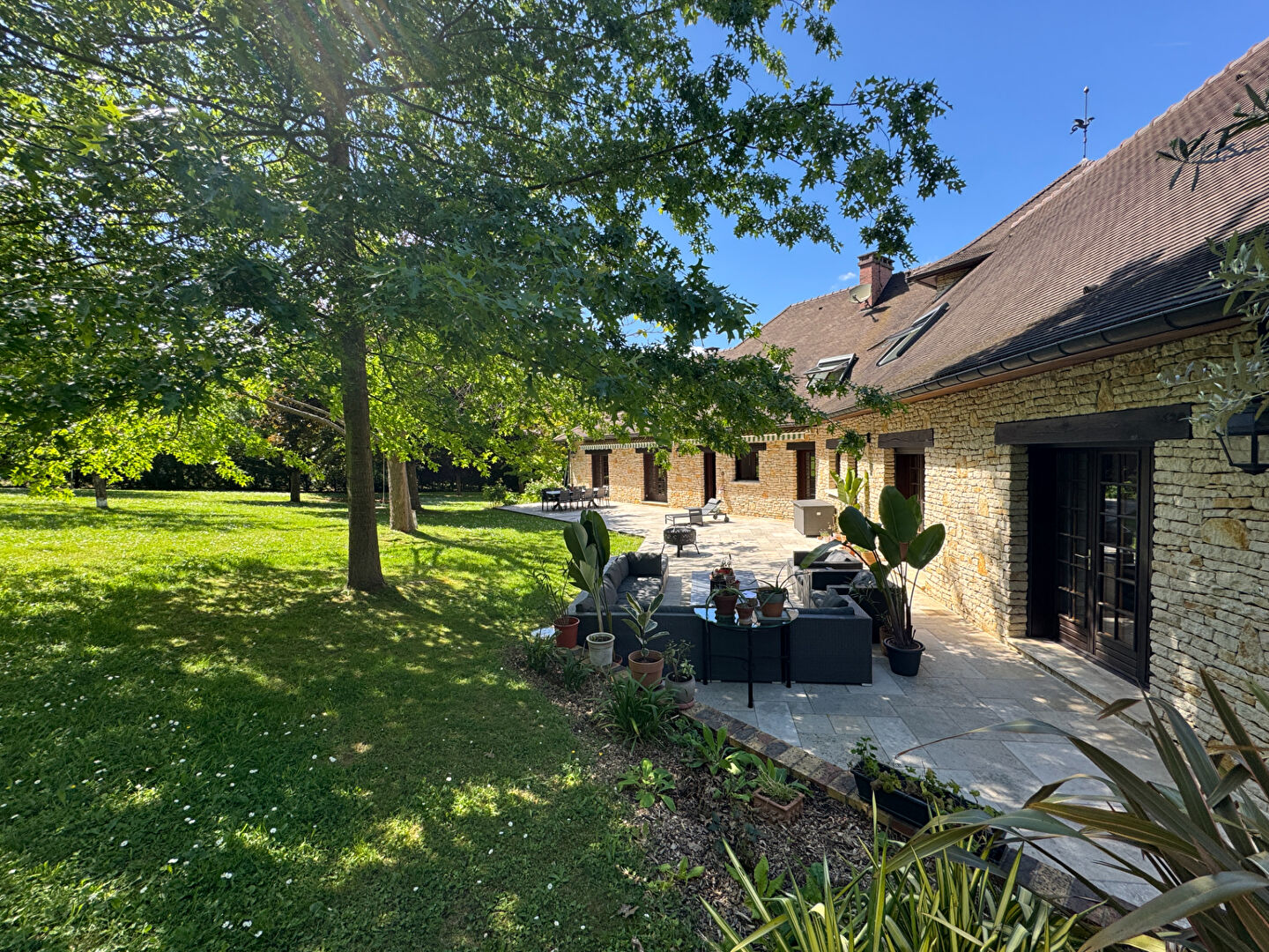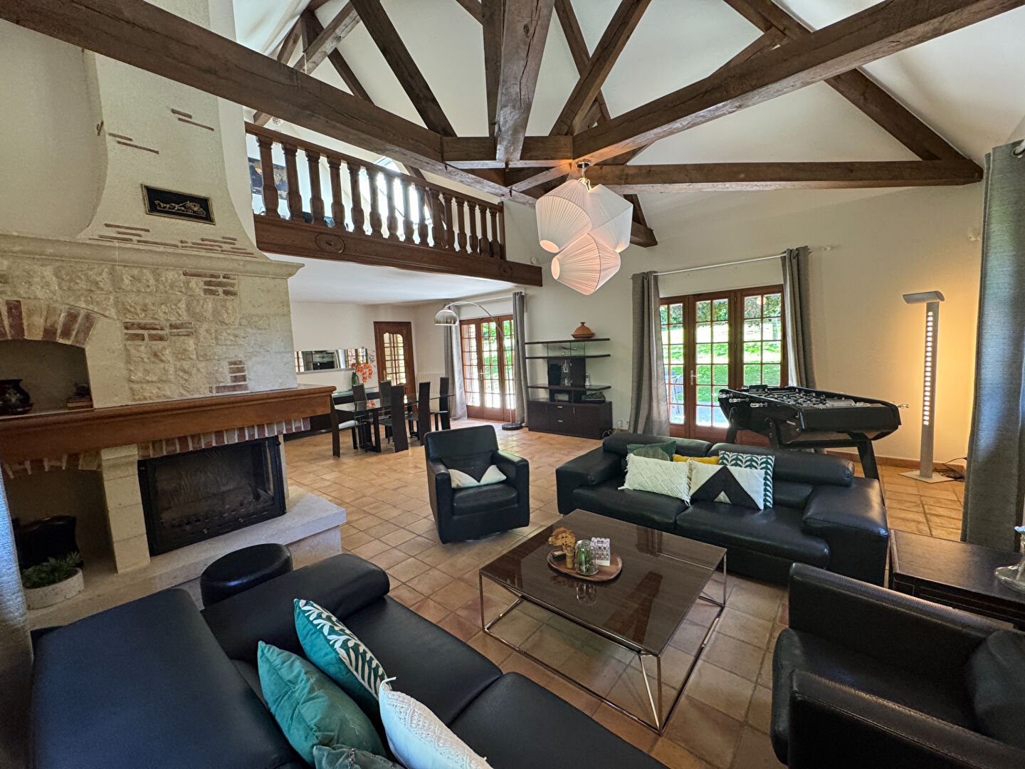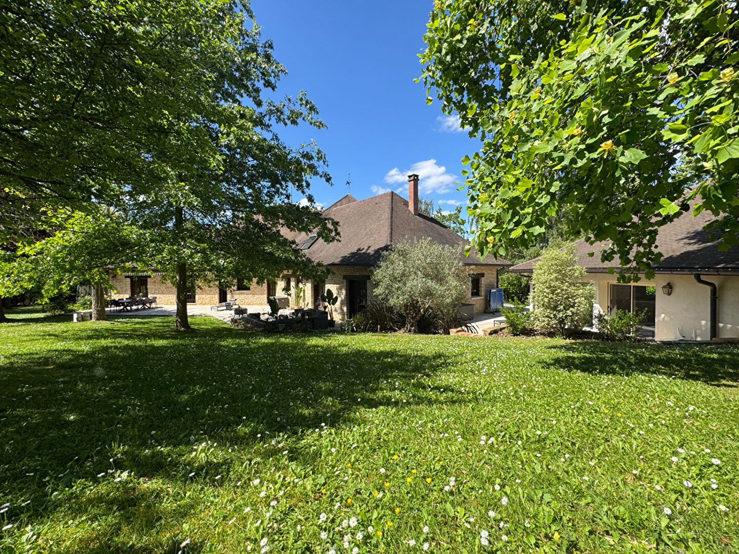 A 6 ' de Montfort l 'Amaury , très bel environnement pour cette propriété exceptionnelle de qualité , de 1990 ,en pierres sèches , avec matériaux nobles et équipements de qualité qui ornent son intérieur . Deux spacieux séjours cathédrales dont l'un dispose d'une cheminée double face avec insert et l'autre salon avec cheminée avec insert donnant sur une grande terrasse et jardin exposés Sud , au calme absolu, sans aucun vis à vis -Cuisine sur terrasse avec office- Suite parentale complète et une chambre avec salle d'eau +wc -Bureau ou chambre et salon TV . A l 'étage: magnifique escalier et charpente crées par les Compagnons , suite parentale et 3 chambres avec salle de douche-Dressing-Mezzanine . Sous-sol total avec garage 5 voitures -Grande buanderie/chaufferie-/ Atelier Salle de sport avec coin bar -Cave à vins- Galerie en sous sol menant à la piscine à débordement intérieure chauffée avec douche et wc. Adoucisseur + Alarme + volets + Vélux centralisés .... En parfait état - Unique , à voir ! REF: 2729 (5.00 % honoraires TTC à la charge de l'acquéreur.)