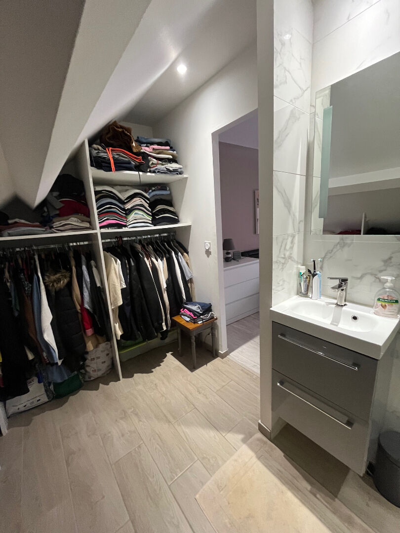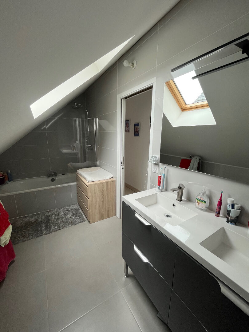Une maison mitoyenne d'un seul coté édifiée sur un terrain de 300 m² comprenant en rez-de-chaussée : une cuisine aménagée, un séjour, un wc, un garage. A l'étage : un palier, trois chambres et une suite parentale avec salle d'eau et dressing, une salle de bains, un wc.
