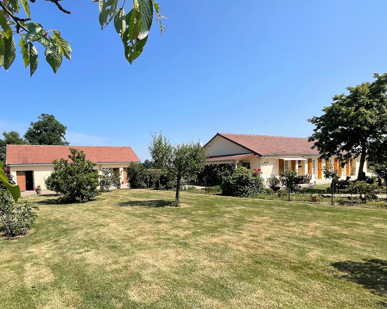Située dans un environnement calme et verdoyant, cette maison de plain-pied rénovée en 2008 offre 230 m² habitables sur un terrain de 3908 m². Les atouts principaux : 4 grandes chambres + bureau en mezzanine Spacieuse cuisine aménagée et équipée Grande pièce de vie lumineuse (exposition sud) Confort optimal : climatisation réversible, radiateurs électriques, insert bois, isolation performante Extension : jardinerie, chenil, atelier, garage et grenier Jardin arboré de 1200 m² avec terrasse de 20 m² Prestations complémentaires : Forage Portail motorisé, garages et volets roulants électriques Système d'alarme 2 stationnements intérieurs + 2 extérieurs Un bien rare, fonctionnel, sécurisé et parfaitement entretenu. Idéal pour une famille à la recherche de confort, d'espace et de tranquillité. (5.00 % honoraires TTC à la charge de l'acquéreur.) Abel PERROT (EI) Agent Commercial - Numéro RSAC : - .