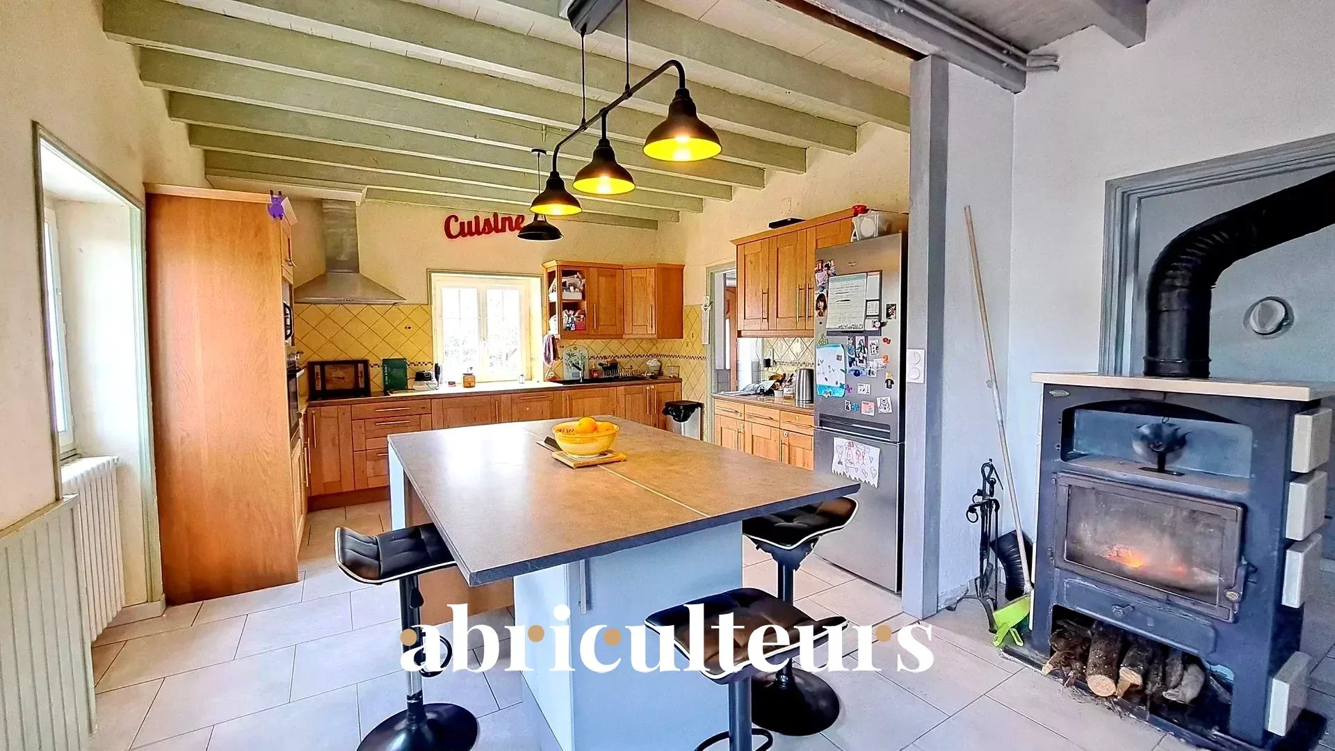 Cette demeure, datant de 1849, est aménagée de la manière suivante : - Séjour spacieux et lumineux, - 5 chambres, certaines avec placards et une avec dressing, - Cuisine ouverte avec îlot central donnant sur le séjour, - 1 salle de bains avec baignoire et douche, - WC séparés. Atouts : - Une terrasse pour profiter des beaux jours, - Un garage pour le stationnement de votre véhicule, - Un bureau pour vos activités professionnelles ou personnelles, - Un poêle à bois pou
