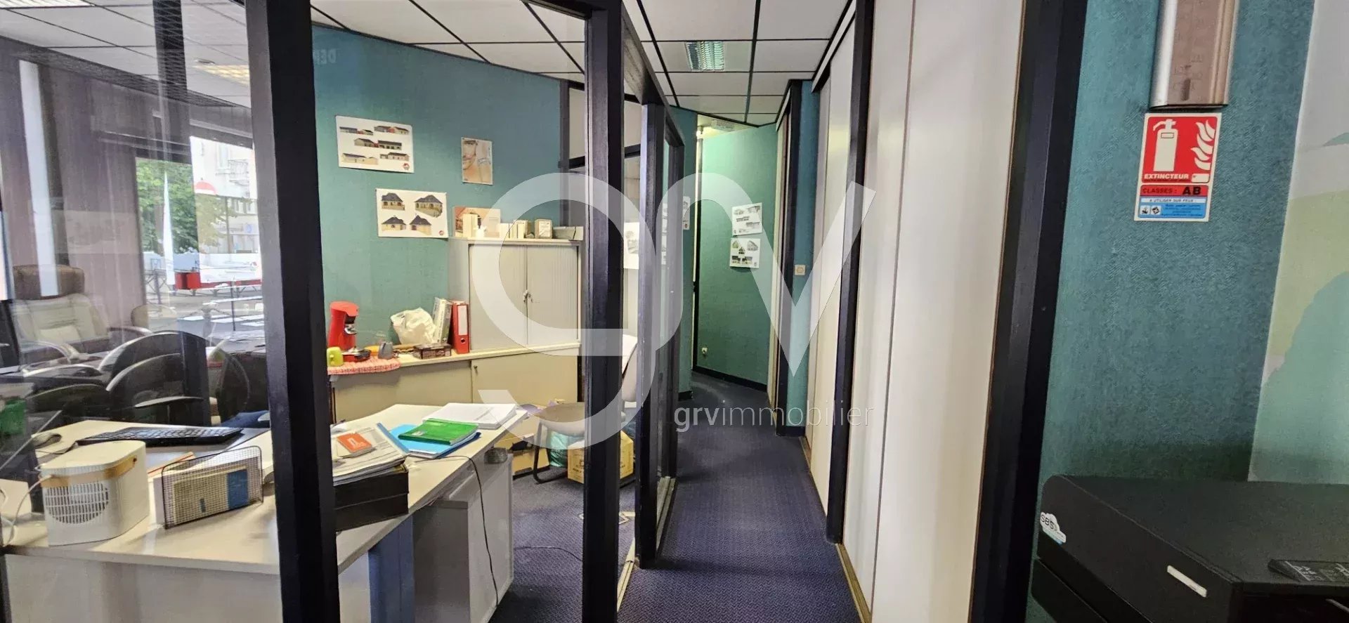 Idéalement situés en coeur de ville à l'approche du centre névralgique de la cité, ensemble de locaux à vendre en rez-de-chaussée d'une petite copropriété et répartis de part et d'autre de l'entrée de l'immeuble. À gauche de la porte d'immeuble, un premier local d'une surface de 40 m² avec toilettes séparés, rangement et petit bureau d'appoint. À droite de l'entrée d'immeuble, en angle de rues, un second local de 4 bureaux, offrant un plateau de 74 m² et nu de murs porteurs, point fort permettant de repenser librement l'espace selon l'activité ou l'occupation. Ce lot est complété de deux anciennes caves réaménagées en sous sol de la copropriété. L'immeuble est raccordé au réseau chaleur bois de la ville.