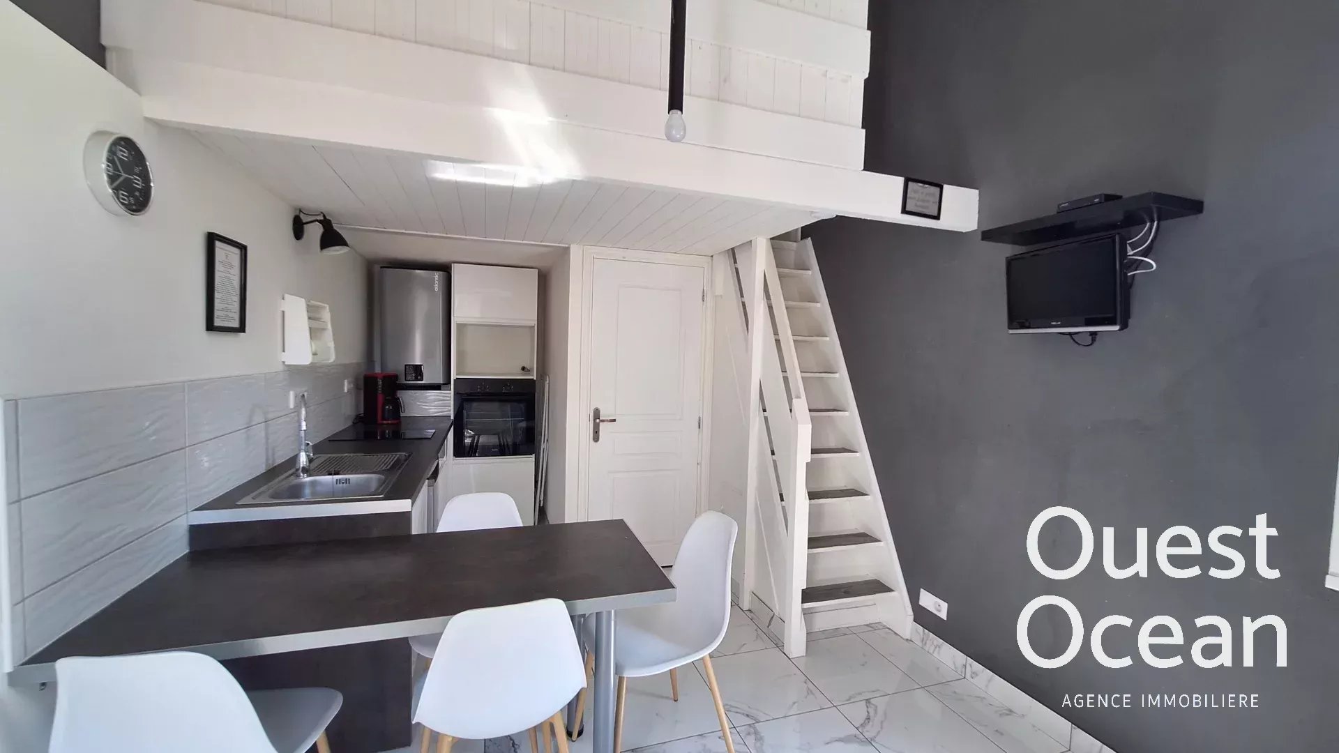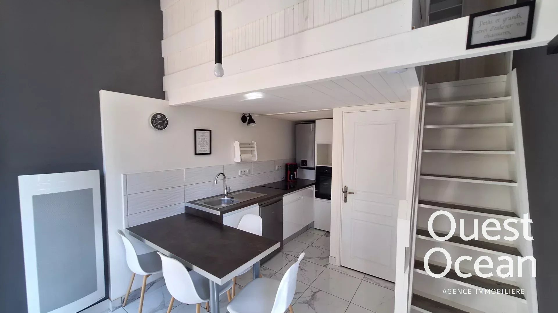 Votre agence Ouest Océan ,vous accueille téléphoniquement du lundi au vendredi ,de 8h30 à 18h.Nous vous proposons de visiter cette maison en copropriété proximité de la plage et la forêt. Composée d'une pièce de vie avec coin cuisine aménagée et équipée , une salle d'eau avec douche et wc. A l'étage, une mezzanine pour couchage. A l'extérieur, une terrasse en bois et son store banne et une place de stationnement. Copropriété de 65 lots gérée par notre service syndic. Les informations sur les risques auxquels le bien est exposé sont disponibles sur le site Géorisques : www.georisques.gouv.fr