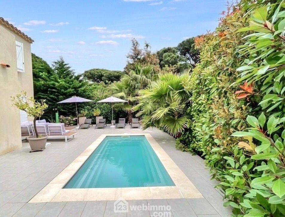 Votre agence 123webimmo vous présente : Sainte-Maxime, dans un domaine privé recherché, charmante villa individuelle de 119 m² en parfait état, au calme absolu et exposée plein Sud. Un bien rare, idéal pour les familles françaises ou étrangères à la recherche de confort, de tranquillité et de nature. La villa se compose d'une entrée accueillante, d'un vaste séjour lumineux avec cheminée insert et espace salle à manger, d'une cuisine ouverte entièrement équipée, d'une buanderie indépendante, d'une salle de bains, de WC séparés et de trois chambres de plain-pied. À l'étage, deux chambres supplémentaires dont une avec terrasse offrant une vue dégagée sur la pinède et la zone naturelle protégée. Une salle de douche à l'italienne complète l'espace nuit. À l'extérieur, un jardin paysager de 580 m², joliment arboré, accueille une piscine chauffée, un espace cuisine d'été et une buanderie indépendante, le tout sans vis-à-vis. Le domaine sécurisé propose également une grande piscine commune, deux courts de tennis et un environnement soigné, à proximité immédiate des commerces. Un lieu de vie rare et préservé à Sainte-Maxime, où calme, nature et confort se conjuguent au quotidien. L'agence 123Webimmo Sainte-Maxime vous propose un accompagnement personnalisé tout au long de votre projet immobilier. Visite sur rendez-vous et visite virtuelle disponibles sur demande. Les informations sur les risques auxquels ce bien est exposé sont disponibles sur le site du gouvernement : https://www.georisques.gouv.fr.Informations LOI ALUR : Soumis au régime de copropriété. Nombre de lots : 60. Quote part annuelle(moyenne) : 1440 euros. Honoraires charge vendeur. (gedeon_26498_31428323)