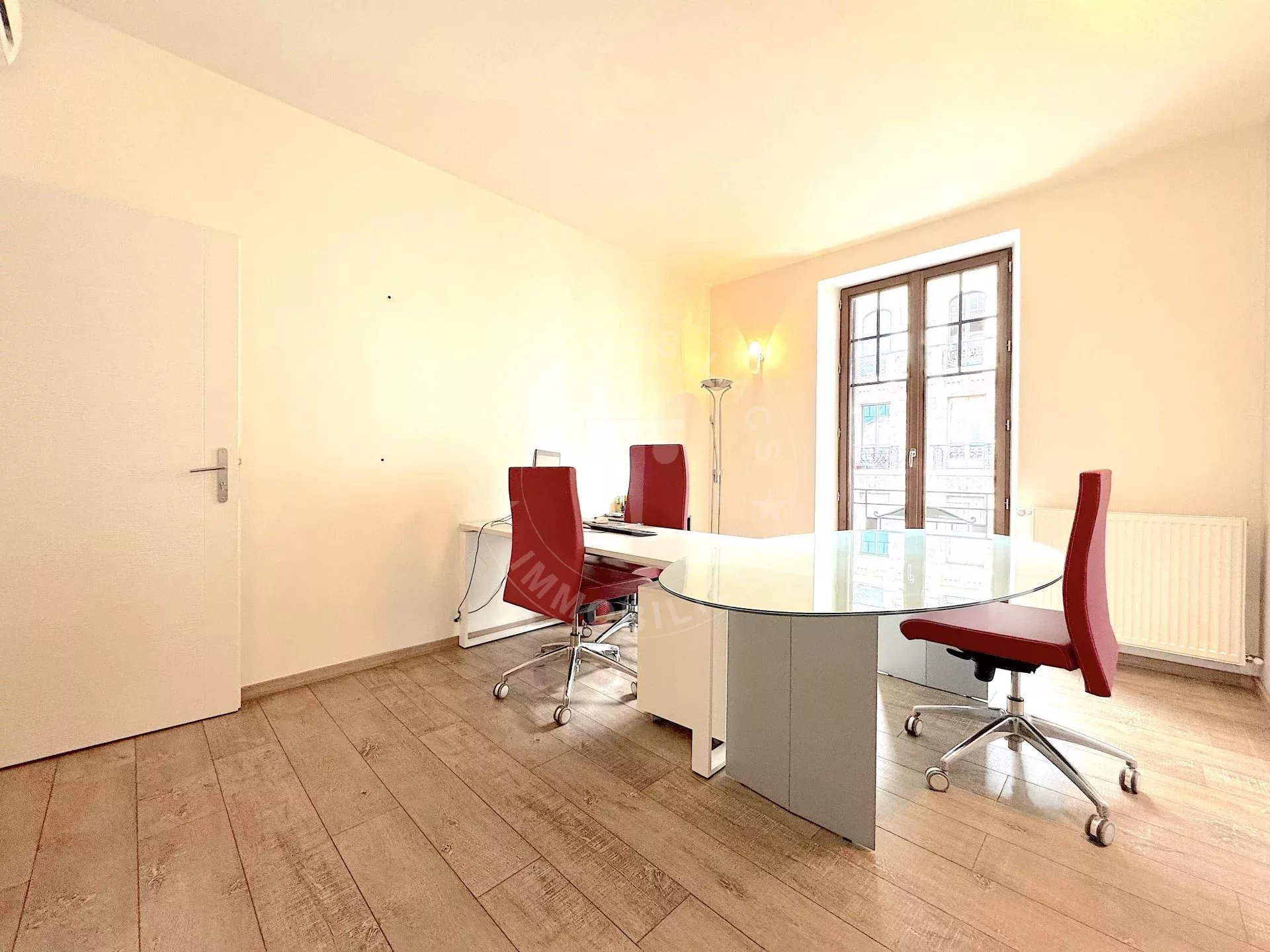 En plein centre-ville d’Annecy, dans une résidence de caractère , cet appartement de plus de 180 m² environ occupe le deuxième étage et bénéficie d’une situation exceptionnelle, à proximité immédiate des commerces, du lac, des transports et de la gare. Aujourd’hui utilisé comme bureaux, il séduit immédiatement par ses volumes et sa clarté . L’ensemble a été rénové avec soin : parquet, climatisation, verrières sur-mesure, cuisine aménagée… tout est en parfait état. La configuration actuelle comprend un vaste espace d’accueil, plusieurs bureaux indépendants, une salle de réunion, un coin cuisine, des sanitaires et des espaces de rangement. Chaque pièce est lumineuse et les hauteurs sous plafond renforcent la sensation d’espace. Cet aménagement conviendra parfaitement à une étude notariale, un cabinet d’avocats, une société de conseil ou tout professionnel à la recherche d’une adresse centrale. Mais au-delà de l’usage professionnel, c’est surtout le potentiel de transformation en un appartement familial d’exception qui fait de ce bien une opportunité rare. Un double séjour, une cuisine avec verrière, quatre chambres, un bureau, une salle à manger et une terrasse au calme sont facilement envisageables, comme le montrent les visuels d’aménagement virtuel réalisés à partir des volumes existants. L’ambiance y devient chaleureuse, contemporaine, sans dénaturer le charme classique de l’immeuble. Le bien est vendu avec une place de stationnement privative, une cave, 2 grenier et une studette indépendante avec vue sur les toits. Un garage fermé peut également être acquis en supplément. Idéalement placé, généreux, polyvalent et élégant, cet appartement s’adresse à ceux qui recherchent un bien hors normes en cœur de ville, qu’il s’agisse d’un projet résidentiel ou professionnel. Contact : Mathis UOMOBONO – Gérant 📞 06 78 75 83 11 📧 mu@tourdeslacs.com Tour des Lacs Immobilier