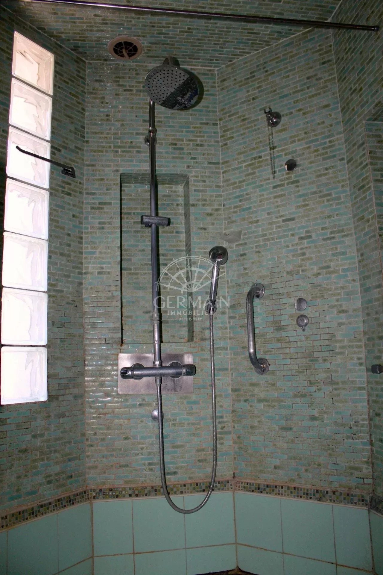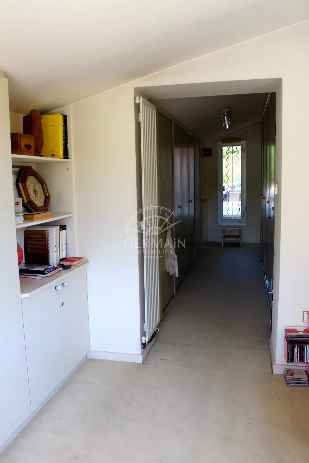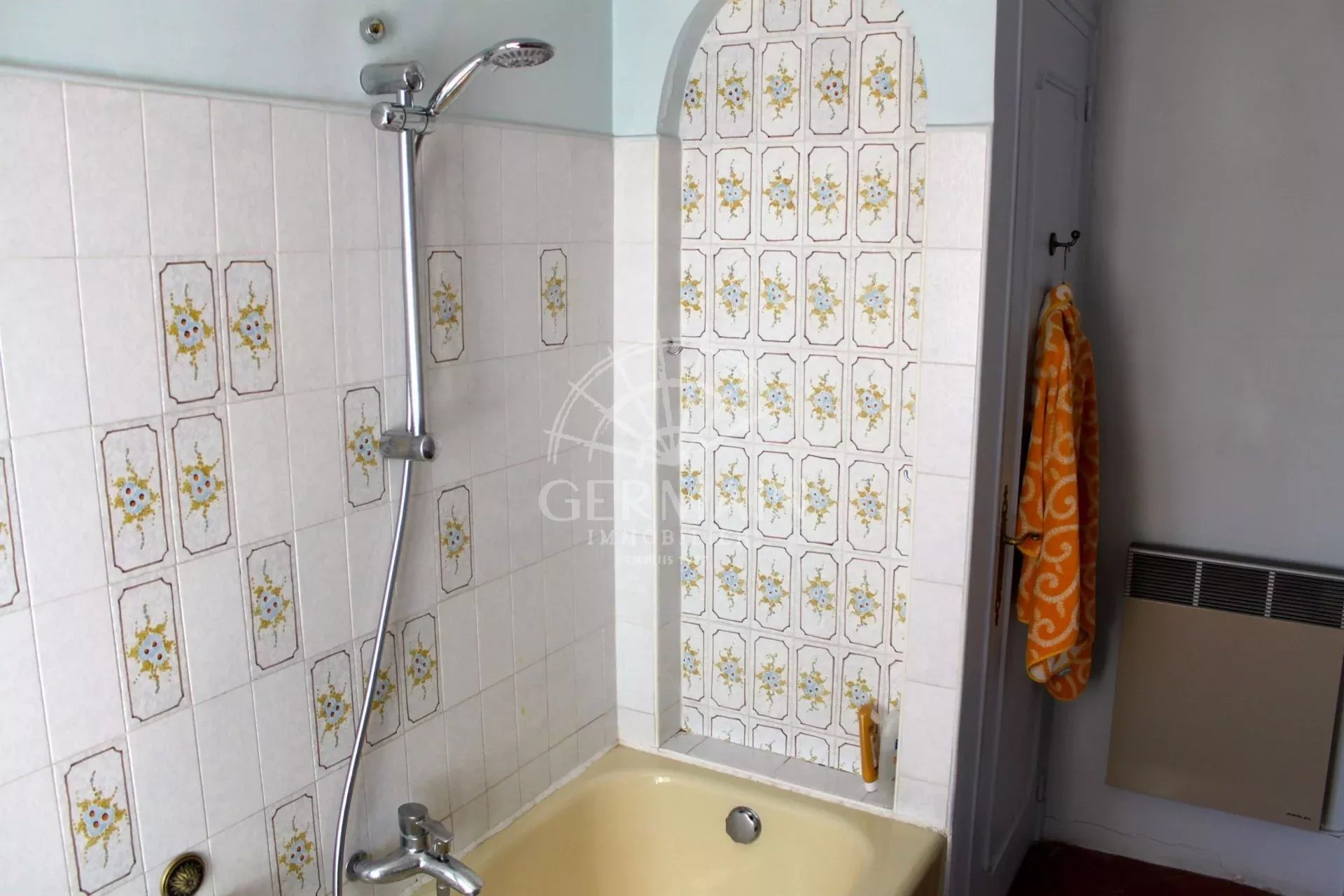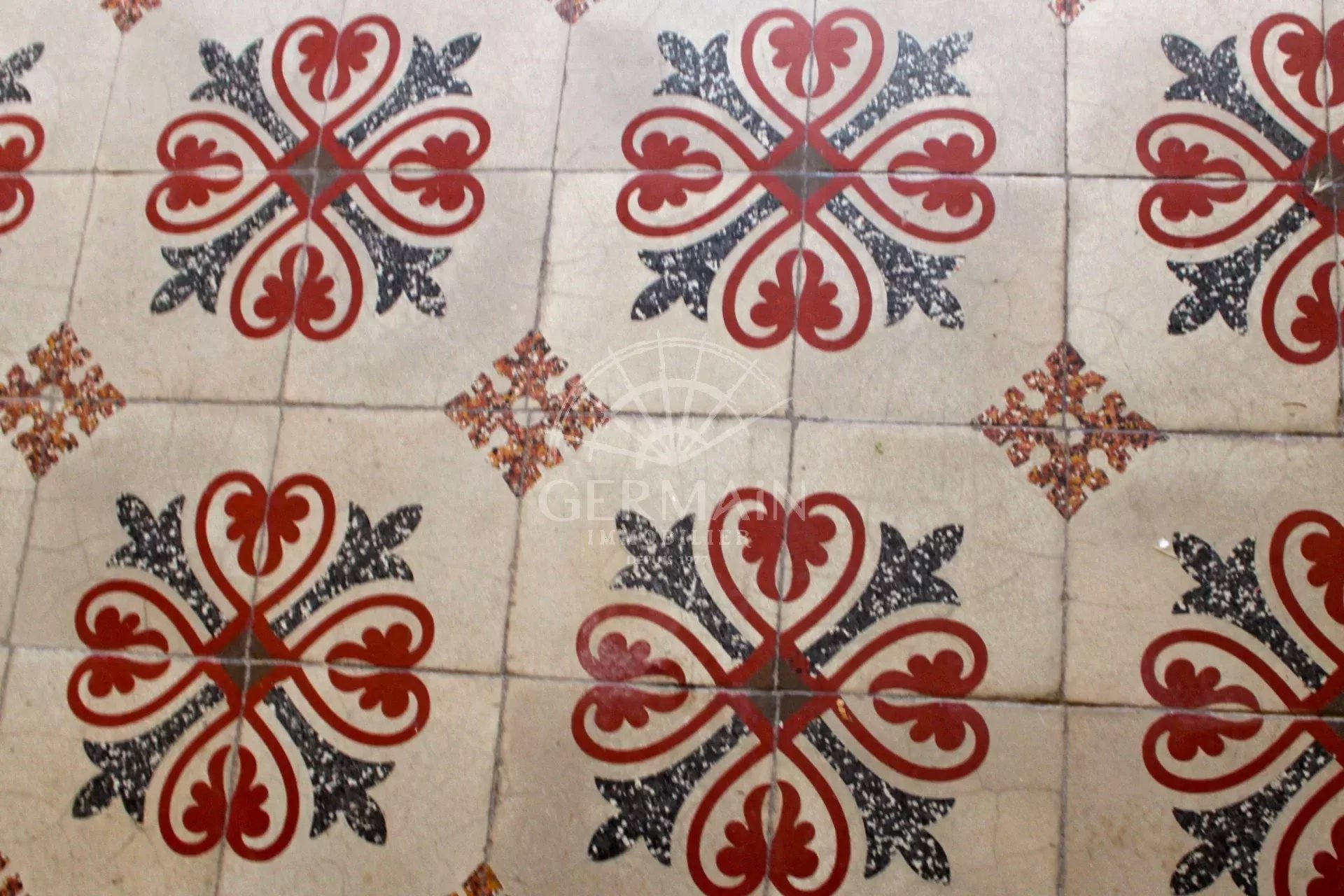 De là se découvre un salon de 50 m² lui aussi exposé au sud, de magnifiques carreaux de ciment d’origine donne du charme à cette pièce.