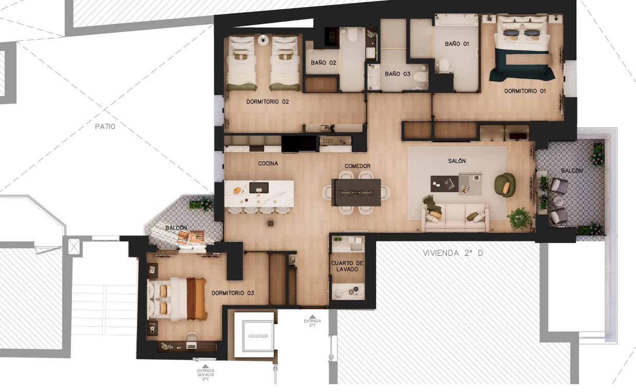 Veraltia presents in the prestigious neighborhood of Goya, this spacious interior apartment of 188 m² cadastral, located on the second floor. The property has 3 bedrooms, 3 bathrooms and an interior terrace. It also has community heating, air conditioning and has energy certificate in force. The building also has a porter's lodge, storage room and a parking space included in the price. Currently under construction, this property is ideal for those looking for a modern and well located option, with great potential both to live and to invest in a high demand area.