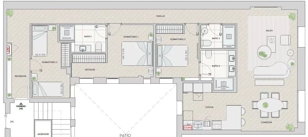 Veraltia presents an elegant 124 sqm interior property, located in the sought after neighborhood of Retiro - Ibiza, just a few steps from Retiro Park and surrounded by urban life, stores and services. The property offers a functional layout with 3 bedrooms, 3 full bathrooms and a fully equipped kitchen. It comes furnished with style and has two interior balconies, which add charm and brightness. It includes elevator, concierge service, central heating, air conditioning and energy certificate in order. All this with very competitive community fees of 121.62 € per month. A unique opportunity to enjoy a modern, comfortable and elegant space, ideal for living or investing in a privileged location in Madrid.