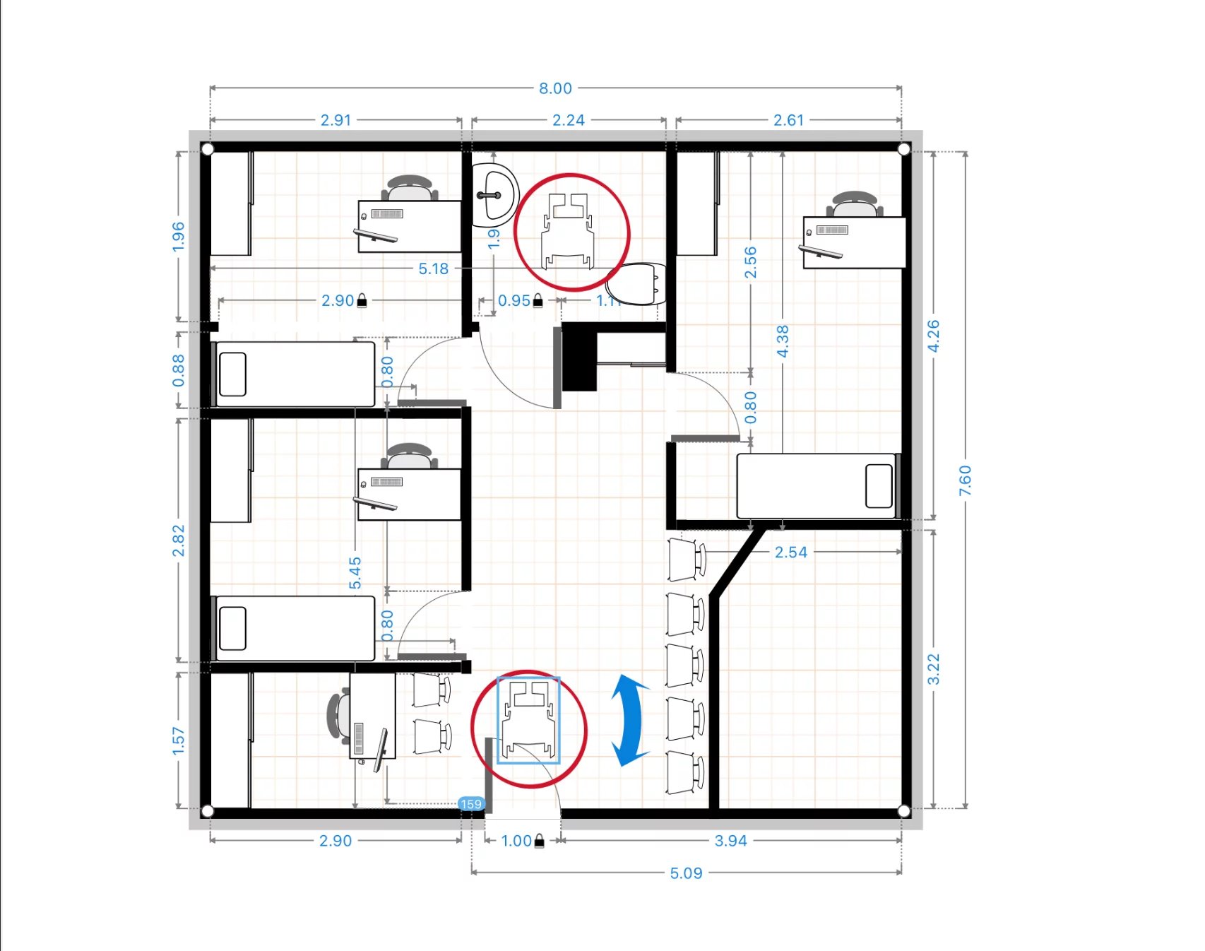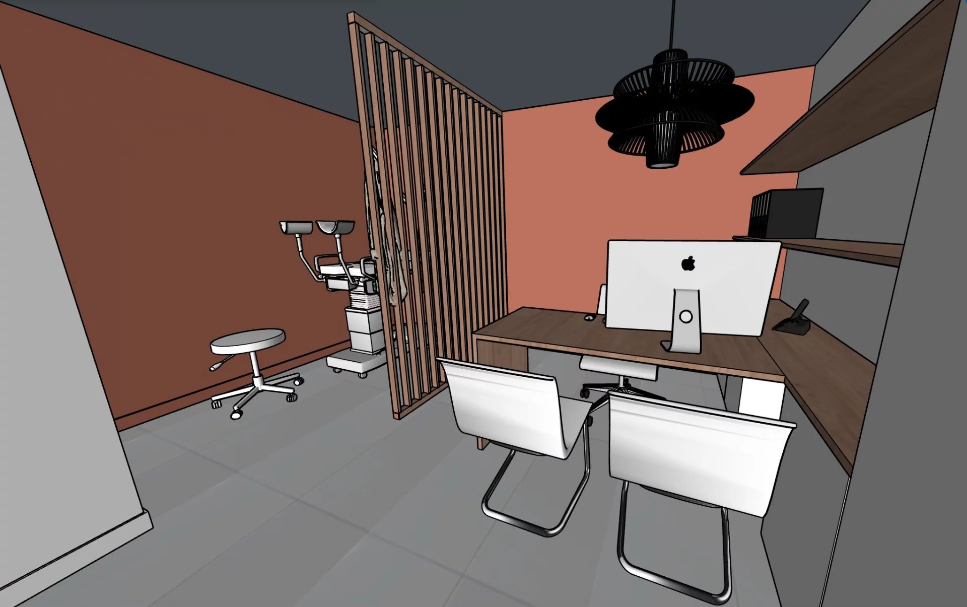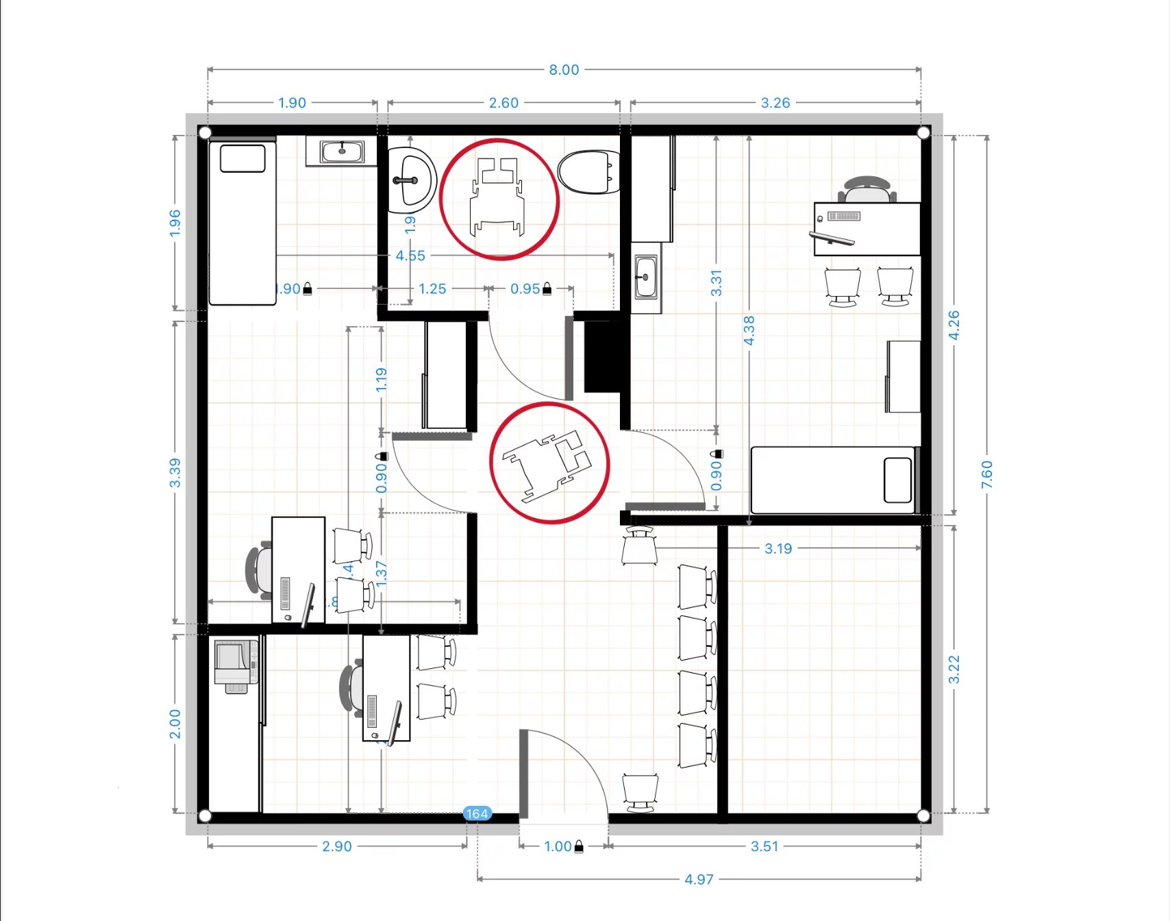 Actuellement composé d’un espace d’accueil, d’un bureau fermé, d’une salle d’eau et de WC séparés.