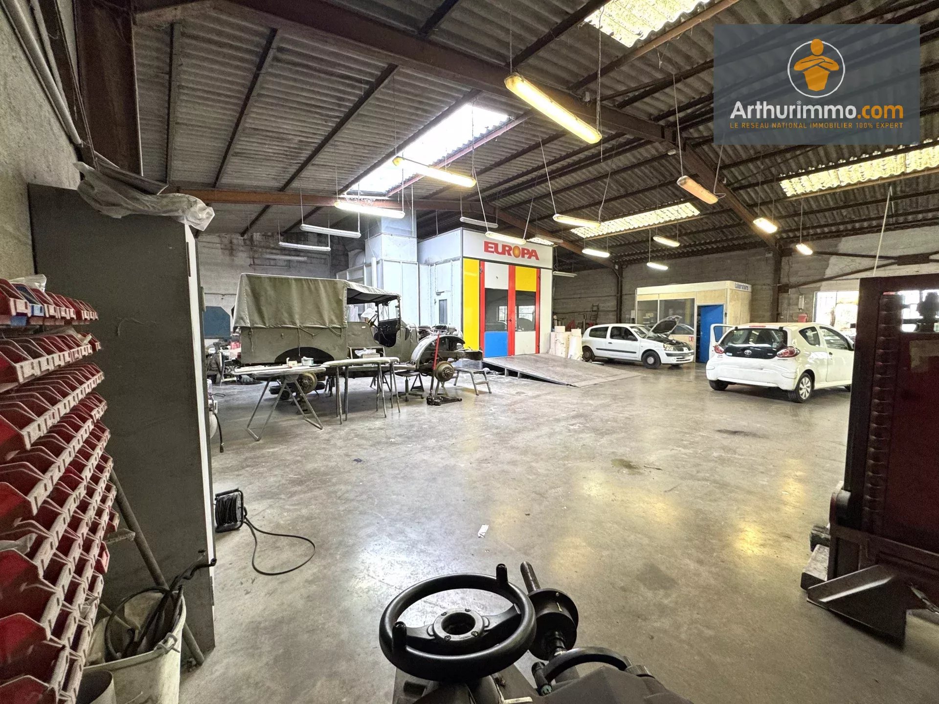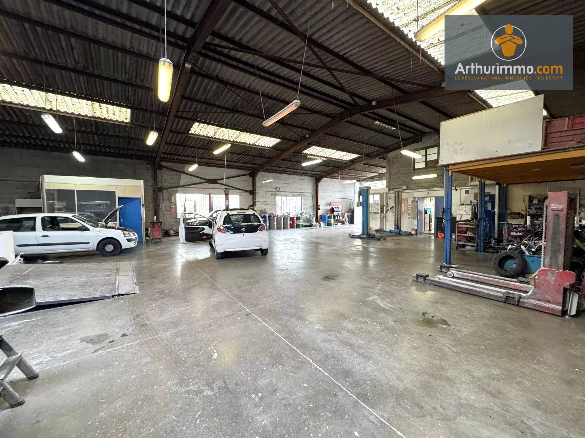Compiègne, Cet ensemble immobilier d'environ 700m² comprend un entrepôt (garage automobile) compartimenté en un atelier de 450 m², un espace accueil et des bureaux. A l'étage, une mezzanine et deux autres espaces avec des bureaux. De plus, un local indépendant comprend une entrée, deux pièces et un WC. Vous trouverez également un pavillon indépendant comprenant une entrée, une cuisine, un séjour salon avec une cheminée et un WC. A l'étage, un grand palier/bureau, une salle de bains, un dégagement et deux chambres. Attenant à cette maison, un garage avec sa porte motorisée. Elle se situe au milieu d'un jardin clôturé. L'ensemble sur une superficie de terrain de 1897 m². A visiter ! Prix de vente : 850 000 euros hors droits et hors honoraires de négociation. Honoraires de négociation : forfait de 45 000 € TTC à la charge du preneur. Bien proposé par Fernando ABREU, agent commercial Numéro RSAC 448 664 490 – Compiègne.
