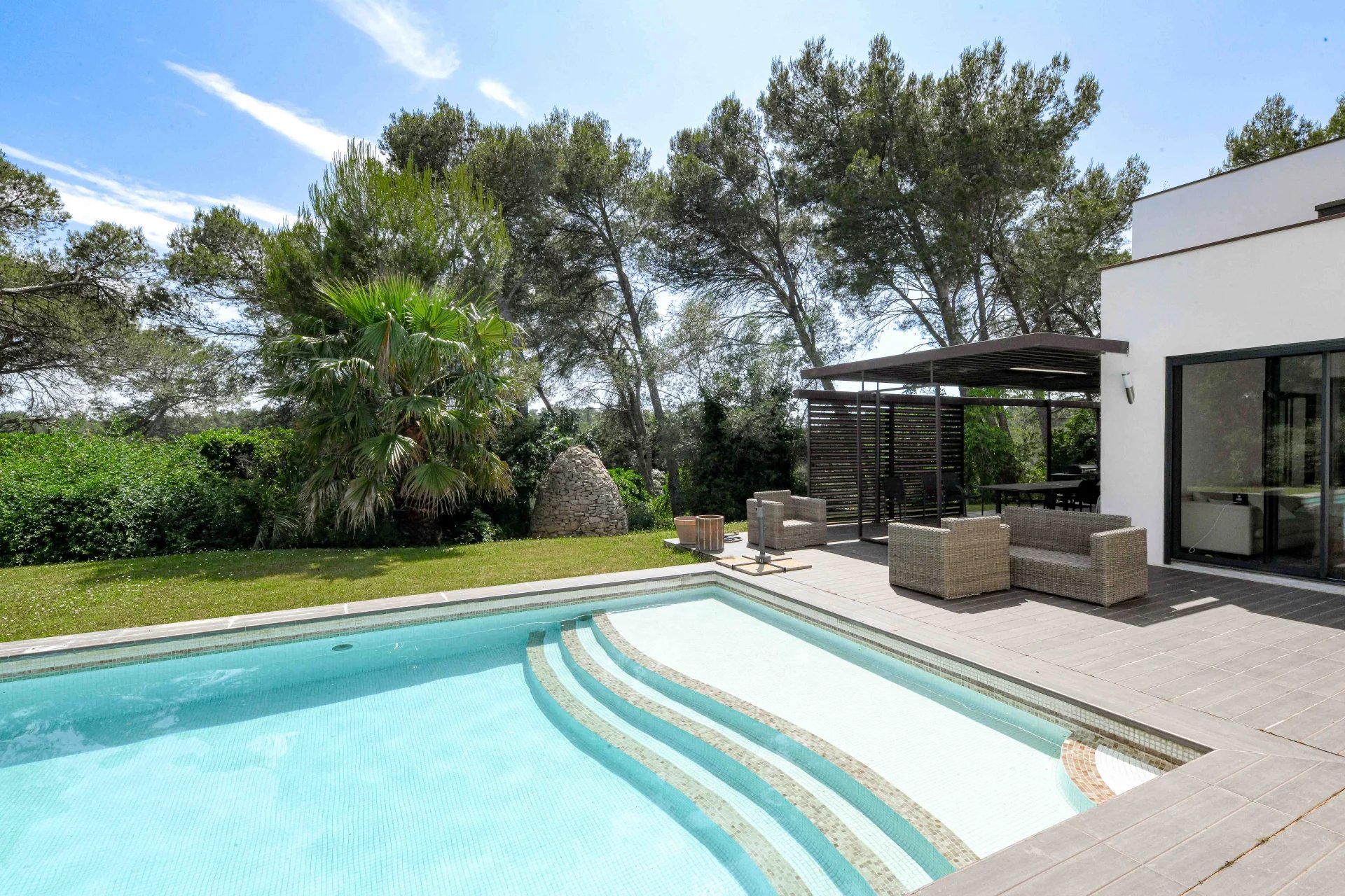 Située dans un quartier résidentiel proche des commodités 4 chambres, studio indépendant, garage et bel espace piscine Beau jardin de 3000 m² terrassé et arboré Environnement de qualité