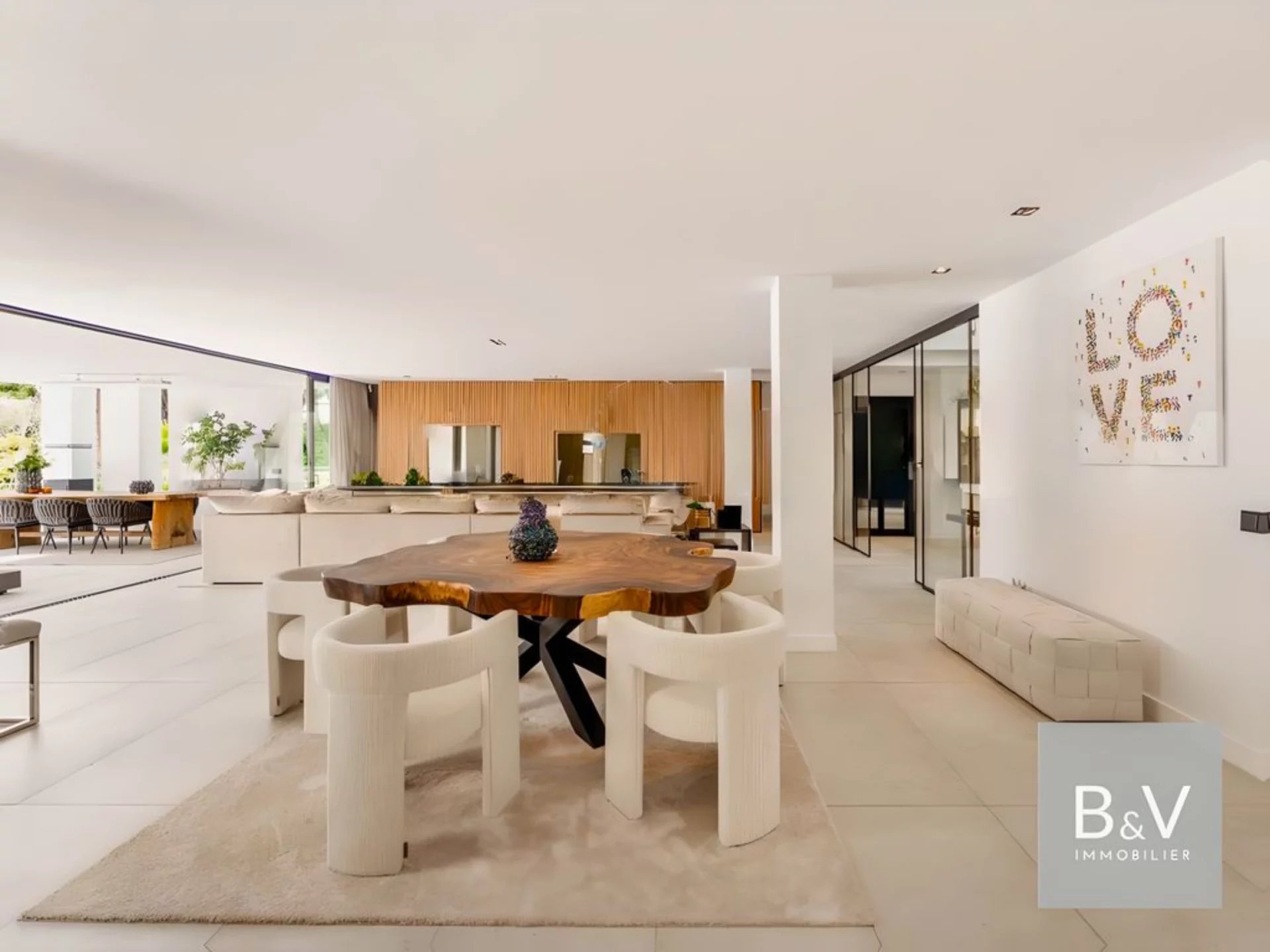 In uno dei quartieri più ricercati e riservati di Marbella, questa eccezionale residenza incarna una visione assoluta del lusso contemporaneo. Vero e proprio capolavoro architettonico, questa prestigiosa villa vanta 697 m² di spazio abitativo, ampliato da 290 m² di terrazze, immerso in 1.871 m² di giardini splendidamente curati. Un design architettonico di grande impatto, impreziosito da finiture eccezionali Progettata secondo gli standard più elevati, utilizzando i materiali più pregiati, questa proprietà incarna un raffinato stile di vita mediterraneo, combinando linee pulite, volumi spettacolari e tecnologia all'avanguardia. Appena varcata la soglia, una maestosa hall rivela un'area di ricevimento inondata di luce naturale, che offre una suggestiva vista sull'esterno. La cucina di design completamente attrezzata fa parte di un elegante open space con una zona pranzo calda e sofisticata. Una suite per gli ospiti e una toilette di cortesia completano armoniosamente questo livello. Piano superiore - Eleganza privata e vista mozzafiato: La suite padronale, un vero e proprio bozzolo di serenità, vanta uno spogliatoio su misura, un bagno sontuosamente arredato e l'accesso diretto a una terrazza privata. Una seconda elegante camera da letto completa questo piano. Al piano superiore, un solarium con studio domina la proprietà, offrendo viste panoramiche mozzafiato. Il livello inferiore ospita altre due camere da letto, un appartamento separato per il personale, una sala cinema privata, una cantina su misura, una palestra con sauna, un ufficio, una lavanderia e un ampio garage custodito per 4 veicoli. Tutte le stanze godono di luce naturale, un lusso raro per un seminterrato. Progettati per il relax e l'intrattenimento, gli esterni sono un vero e proprio invito al relax e alla socializzazione: - Scintillante piscina a sfioro - Salone con camino esterno - Zona pranzo all'aperto con barbecue incorporato - Elegante giardino mediterraneo Servizi ultra-premium: - Sistema domotico integrato di ultima generazione - Sistema di illuminazione e audio surround Lutron - Ascensore privato per tutti i livelli - Due caminetti di design, connessione Wi-Fi ad alta velocità, sicurezza avanzata. A soli 15 minuti da Marbella e Puerto Banús, questa villa unica nel suo genere è un reperto raro per gli amanti del prestigio e della tranquillità alla ricerca dell'eccellenza. Prezzo di vendita: € 5.998.000 HAI Per una visione privata o per informazioni riservate, contattateci.
