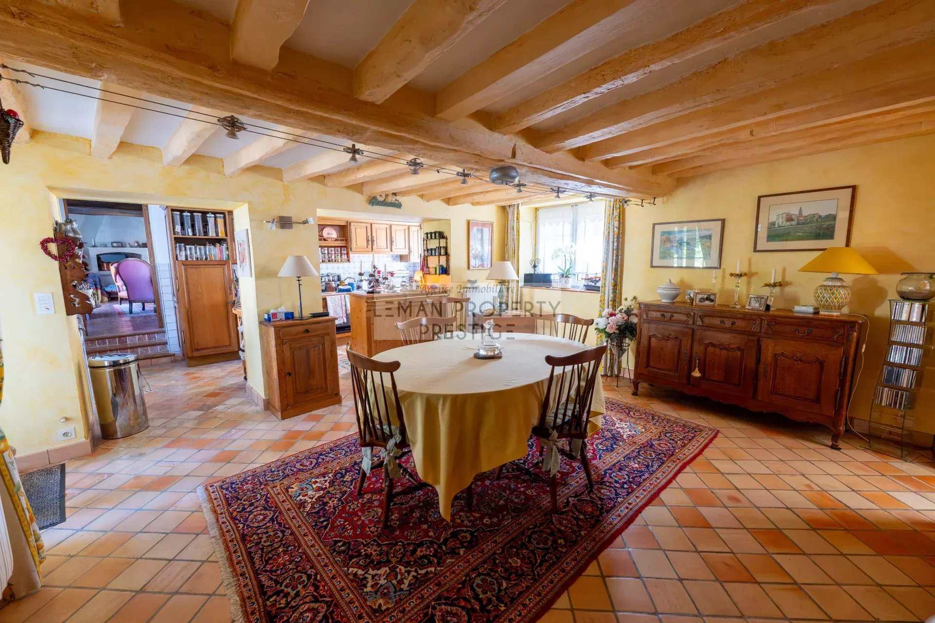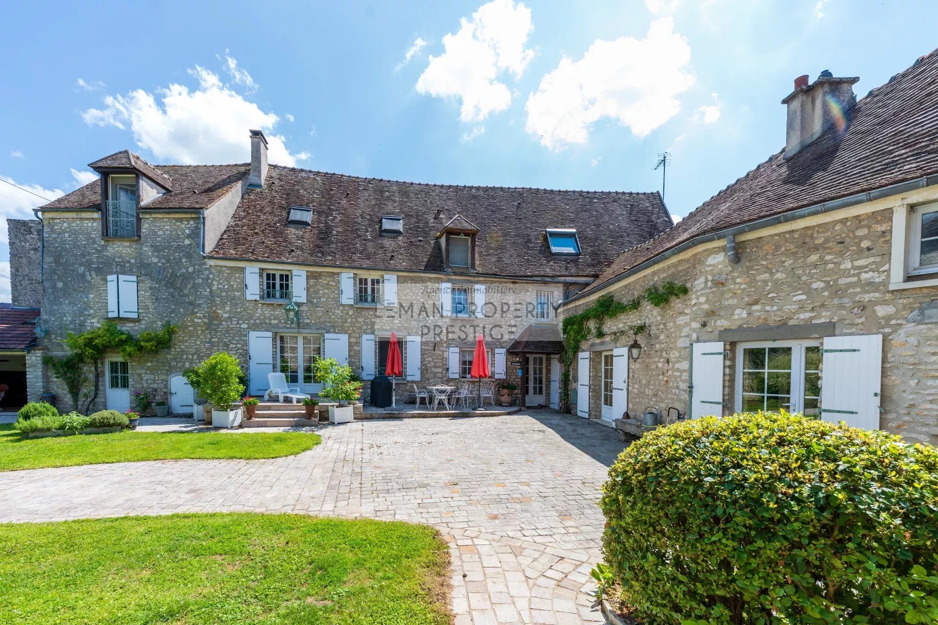 A quelques minutes de Thoiry, nichée dans le cadre bucolique et préservé du pittoresque village de Montainville, cette ancienne ferme du XVIIIe siècle, entièrement rénovée avec goût, offre 305 m² habitables (485 m² de surface utile) sur un terrain clos et arboré de 800 m². Alliant le charme de l’authentique et le confort d’une rénovation de qualité, cette demeure se distingue par ses superbes poutres apparentes, ses tommettes d’origine, et ses cheminées anciennes, qui confèrent à chaque espace une atmosphère chaleureuse et élégante. Le rez-de-chaussée propose une enfilade d’espaces de vie accueillants : une salle à manger d’été avec arrière-cuisine, une chambre de plain-pied, une cuisine semi-ouverte conviviale, une salle à manger intimiste, un salon lumineux, une chaufferie et un atelier. À l’étage, quatre belles chambres baignées de lumière et une salle de douche composent un espace nuit confortable. Le dernier niveau abrite trois chambres supplémentaires, une salle de bain et une salle de douche, idéales pour accueillir famille et invités dans un cadre raffiné. Un garage double, une cave voûtée, un puits ancien et des combles aménageables de 48 m² viennent enrichir ce bien rare et singulier. Un lieu de vie unique, alliant élégance, authenticité et tranquillité, à seulement quelques minutes des commodités et à moins d’une heure de Paris et 30 minutes de Versailles en voiture ou 30 min de MOntparnasse par le ligne N.