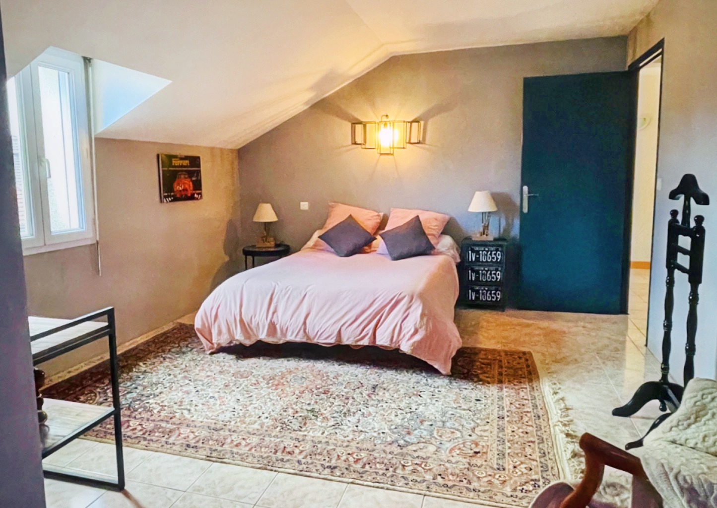 Un large escalier conduit vers l'étage doté de deux chambres d'hôtes, chacune avec dressing, salle de bain et wc. sur ce palier, un espace 'sport' et une vaste pièce faisant office de dressing et rangements.