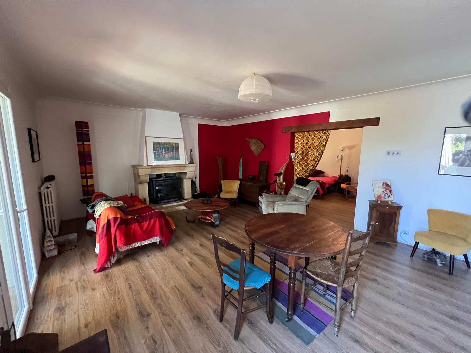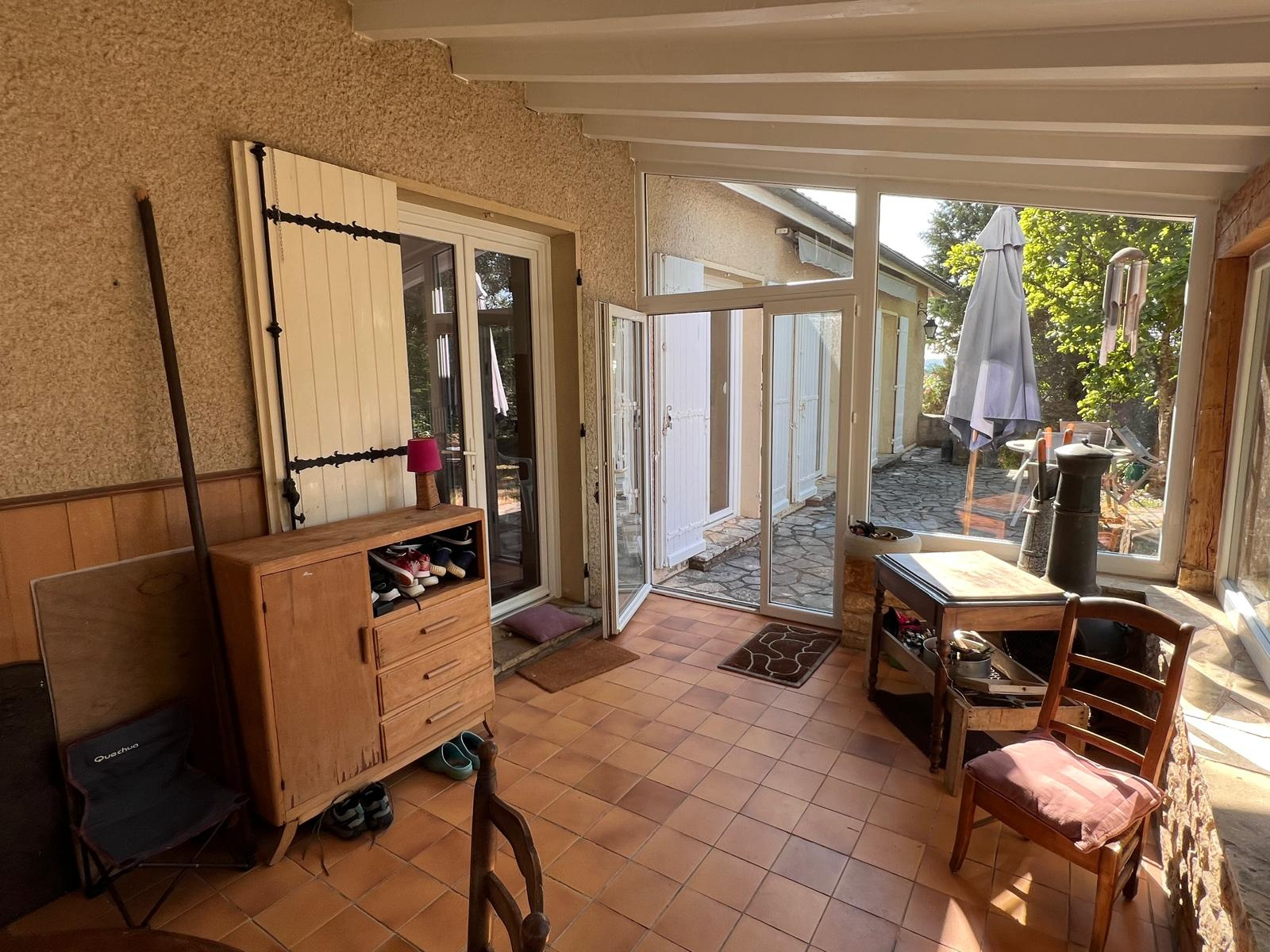 La partie habitable est construite sur un garage de 90 m2, composée d'une cuisine séparée, un grand salon avec cheminée, une véranda, 2 chambres, une salle de bain et un WC séparé. Une terrasse extérieure ombragée devant la façade pour profiter du calme et de la verdure. Le terrain est piscinable. Vous pouvez accéder à la partie habitable de la maison directement en voiture, ce qui en fait un plein pied.