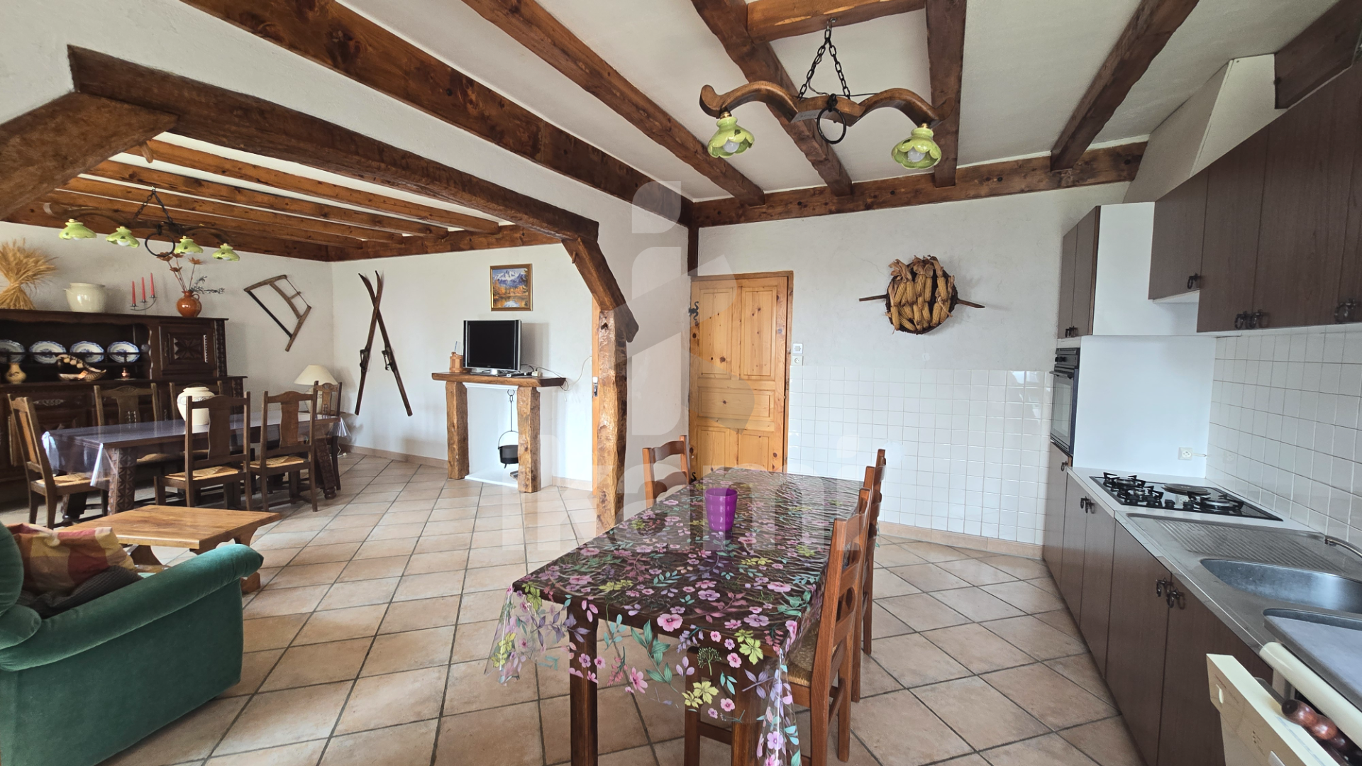 Perchée sur les hauteurs du charmant village de Marthod, cette maison de 142 m2 vous ravira. Entièrement bâtie en pierre, elle séduit dès les premiers instants par son authenticité et son cachet incomparable. Dès l'entrée, un dégagement vous accueille et vous mène à une pièce de vie conviviale, où la cuisine ouverte s'harmonise parfaitement avec la salle à manger. Ce niveau se compose également d'une salle de bains, de wc séparés et de deux pièces supplémentaires, actuellement non exploitées, laissant entrevoir un beau potentiel d'aménagement. À l'étage, quatre chambres offrent l'espace nécessaire pour une vie de famille ou un accueil. Cette habitation, mitoyenne d'un seul côté, permet de bénéficier de tranquillité et d'une excellente isolation. En rez-de-jardin, l'ancien atelier et la cave peuvent également être transformés selon vos envies. Cette demeure au caractère affirmé nécessite des travaux de rafraîchissement et une remise aux normes actuelles, et constitue une opportunité rare pour les amoureux de belles pierres et de vues imprenables sur les montagnes.
