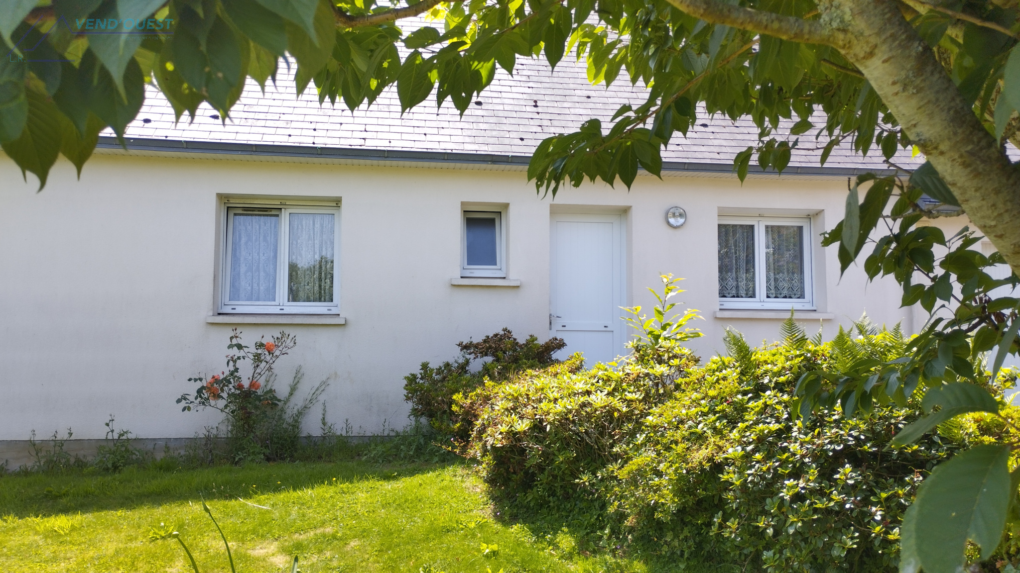 Maison de plain-pied située dans un environnement calme, à proximité du centre de Scaër avec un joli jardin arboré Elle comprend 3 chambres, une cuisine ouverte sur un séjour lumineux avec cheminée insert, une salle de bain, des WC séparés, une véranda et un garage. Un grand hangar permet de stocker une voiture ou du matériel. Des travaux de rafraîchissement sont à prévoir, mais la structure est saine et fonctionnelle.