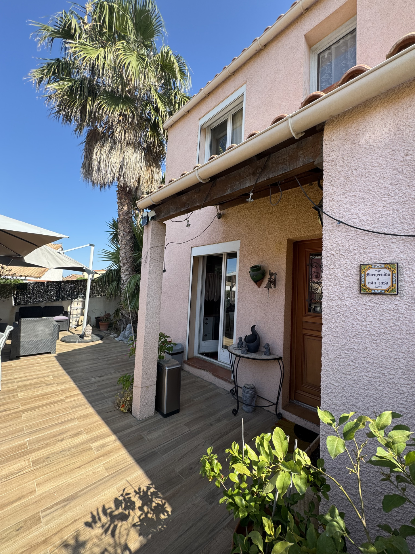 Canet village, proche de toutes les commodités, venez découvrir cette charmante villa 3 faces de 93 m2 habitables, édifiée sur un terrain de 233 m2. Elle offre au rez-de-chaussée une entrée, une cuisine indépendante, un placard de rangement, un wc ainsi qu'un garage de 16 m2. Quelques marches vous mènent à un spacieux salon/séjour de près de 30 m2, prolongé par une véranda lumineuse donnant accès au jardin, idéal pour profiter des beaux jours. À l'étage, vous trouverez deux chambres ainsi qu'une troisième chambre avec salle d'eau rénovée en demi-niveau. Les atouts : climatisation dans le séjour, volets roulants électriques, place de parking privée devant la maison. Contactez-nous!