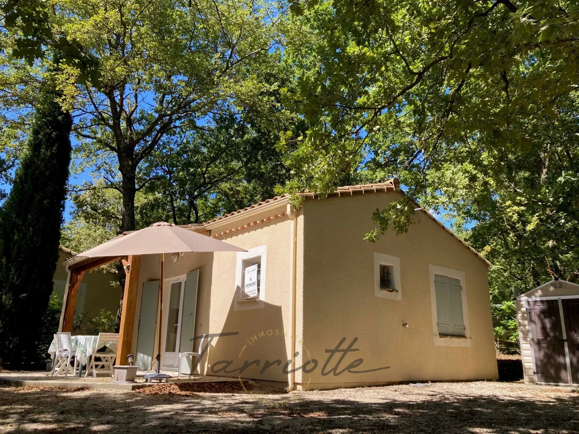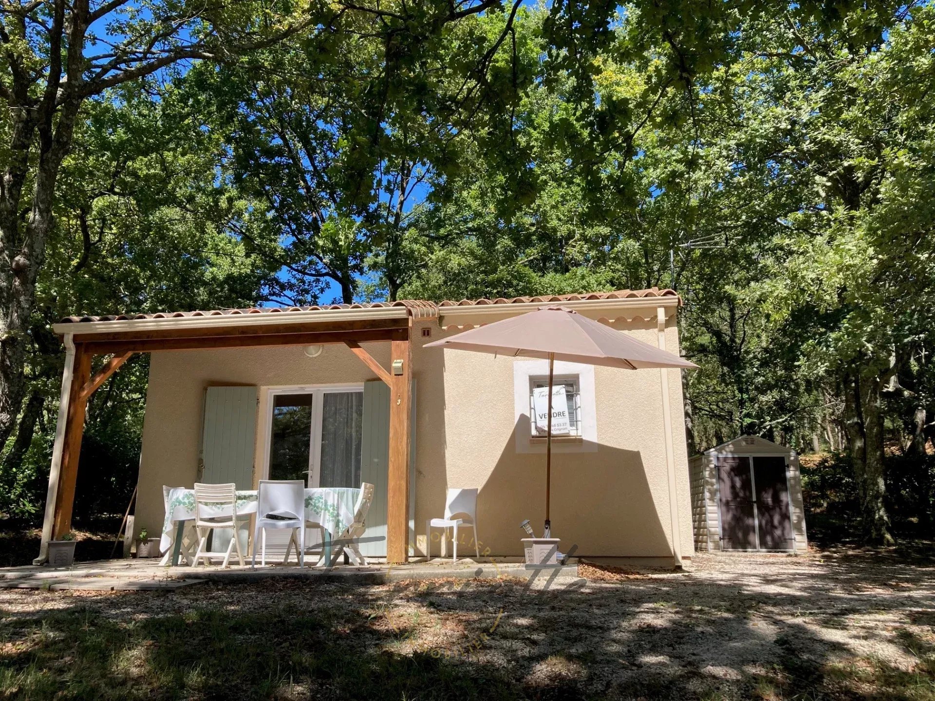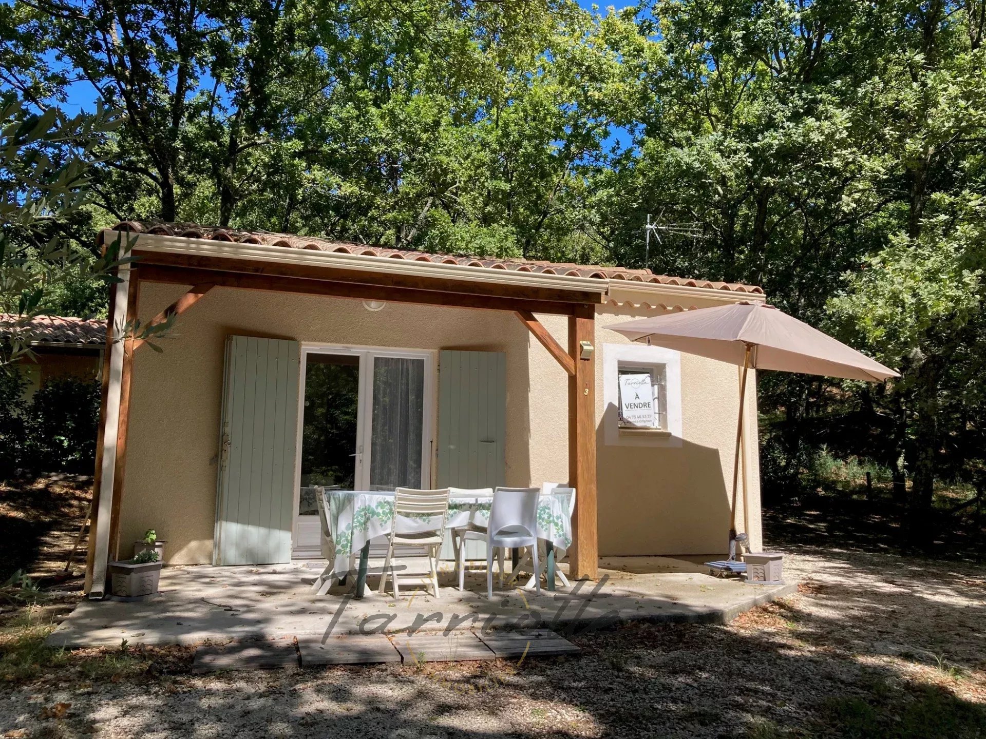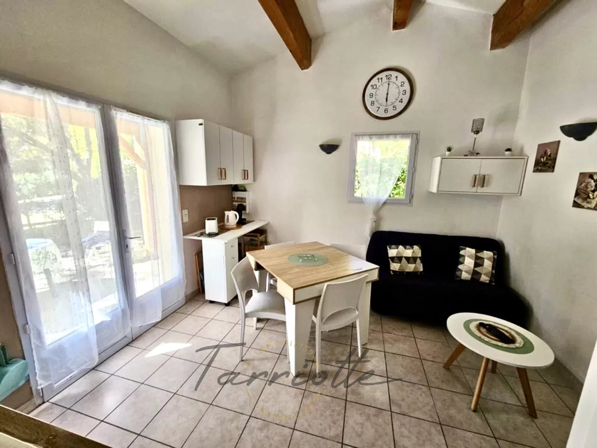 A dix minutes de Grignan, jolie maisonnette indépendante située dans une copropriété de 2.6 hectares boisés et au calme. Elle a une surface de 35.8m², lumineuse et fonctionnelle, elle est vendue meublée, tout équipée, et en très bon état. Elle ouvre sur une agréable terrasse au Sud/Ouest et comprend la jouissance exclusive et privative d'un jardin de 337m² avec place de stationnement. Vous profiterez d'une belle piscine, de l'entretien des haies et parties communes, et d'un jardin donnant sur la foret, les charges de copro sont de 120€ /mois. Idéal pied à terre en Drome provençale, ou investissement locatif.réf 10596. Prix 141 000€ H.A.I honoraires charge vendeur. Contact : Isabelle Repellin, tel 06.08.76.61.34