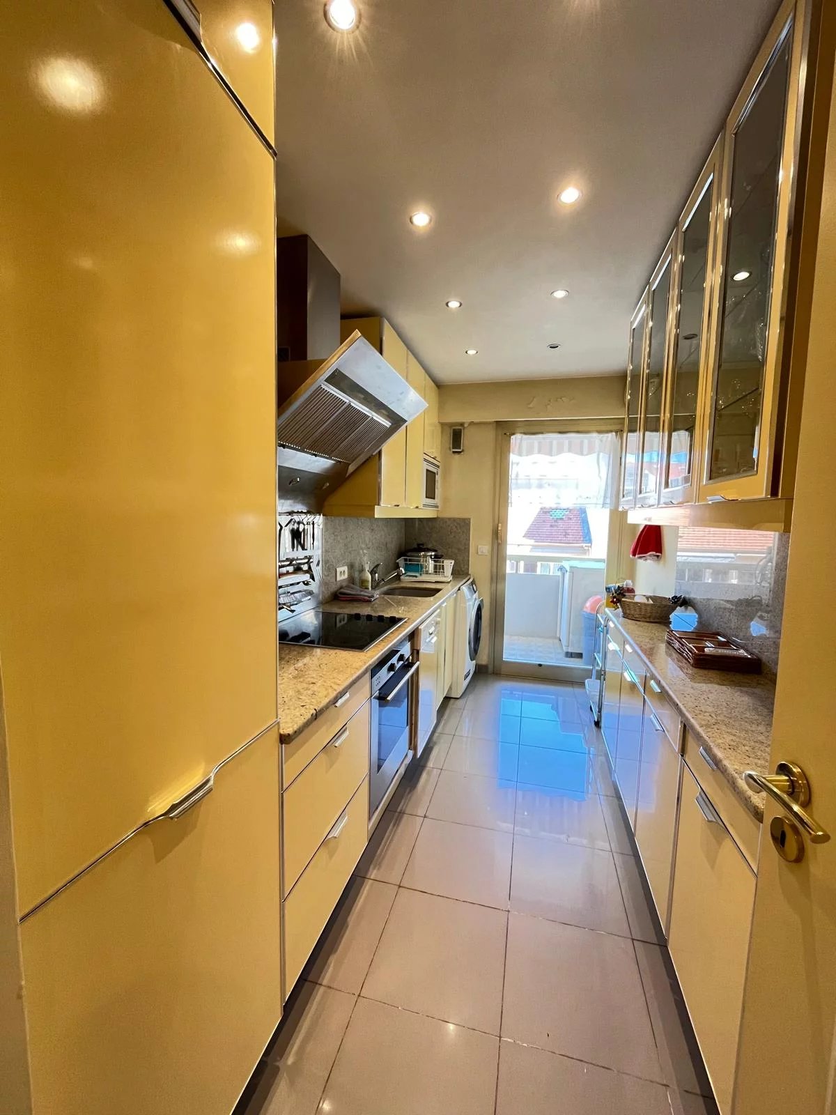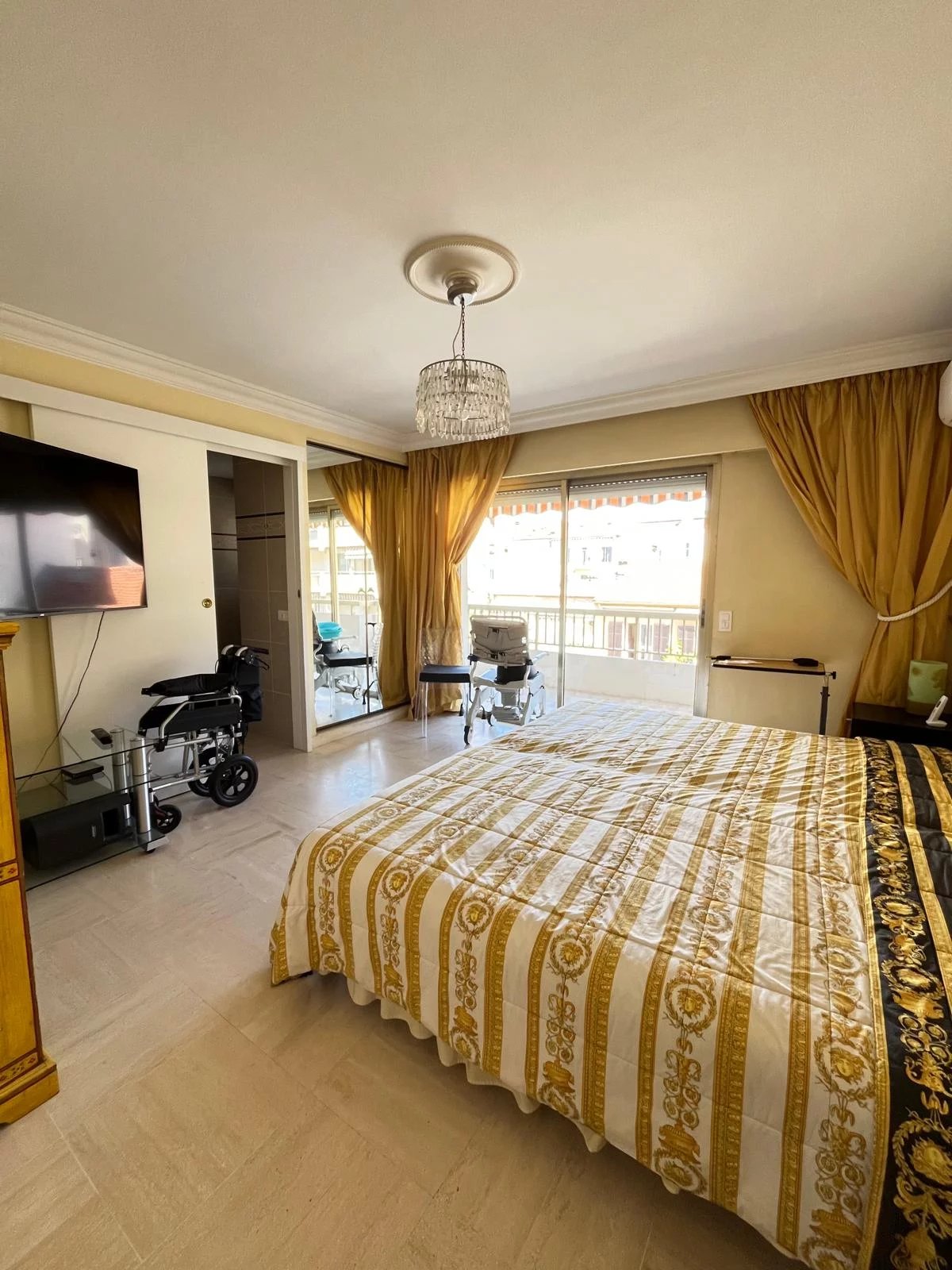 En Exclusivité! Secteur Cannes Banane derrière l'Hôtel Carlton Au sein d'une résidence de standing avec gardien et ascenseur, 3P traversant de 81m² en étage élevé bénéficiant de deux terrasses exposées sud et nord. Séjour Cuisine indépendante équipée 1 Chambre en suite avec salle de douche donnant sur une terrasse 1 Chambre avec accès sur terrasse fermée en loggia, 1 salle de douche 1 WC indépendant Nombreux dressings Climatisation En Annexe : 1 place de parking en sous sol et 1 cave