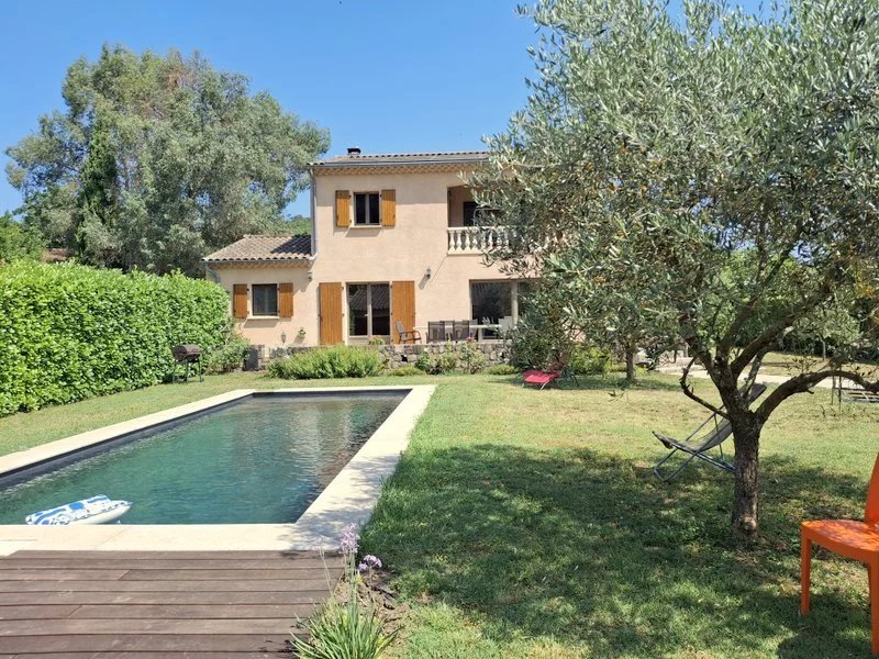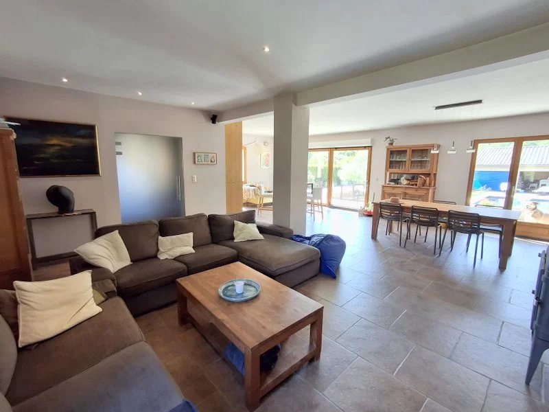Sud Ardèche 07 Maison a vendre 07140 / EN EXCLUSIVITE, A 5 minutes des Vans, grande et confortable villa d'environ 195m² habitable. Elle offre une vaste pièce de vie de 80m² ouvrant sur une belle terrasse, 4 chambres dont une en rez de chaussée, 2 salle de bain. Sous sol de 125m² avec sauna, pièce de sport et local technique. Garage indépendant de 51m² avec salle d'eau. Piscine, terrain clos et arboré d'env. 1750m² avec plage privée en bord de rivière. Droit de pompage, Chauffage au sol, tout à l'égout, panneaux solaires. Belles prestations, quartier calme proche centre des Vans. REF/ 2125.