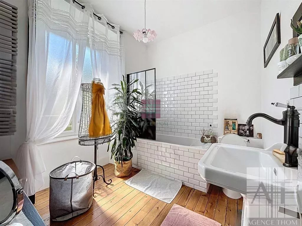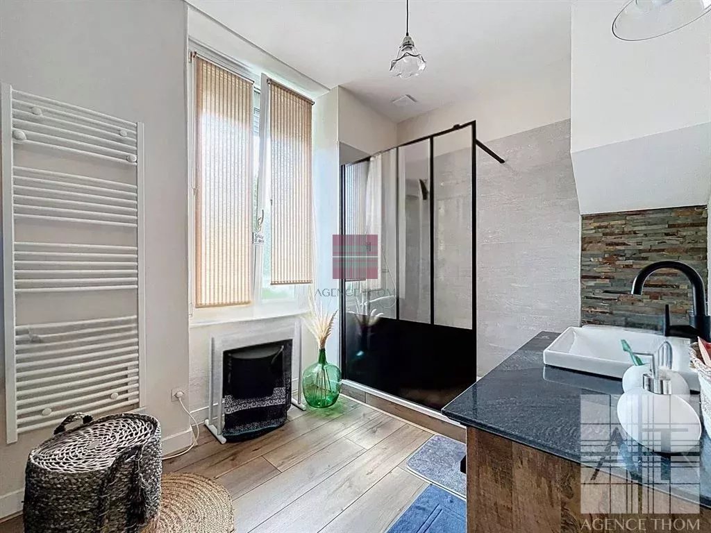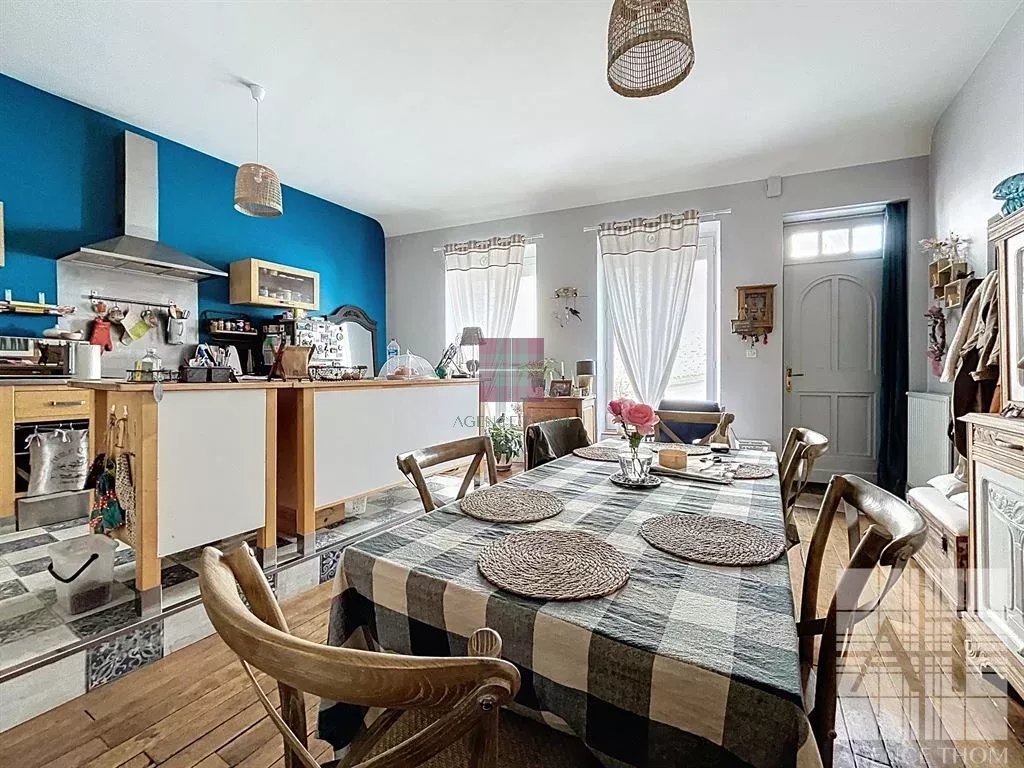 Maison de ville de charme à Ambrières-les-Vallées Nichée au cur du bourg ancien dAmbrières-les-Vallées, cette maison de ville mitoyenne déploie ses 170 m² habitables sur quatre niveaux, alliant le cachet de lancien à un confort chaleureux et fonctionnel. Dès lentrée, latmosphère se révèle : un bel escalier en bois massif, des volumes lumineux, un poêle à bois en cur de salon, une cuisine américaine sur estrade pensée pour les moments conviviaux. À létage, la chambre parentale dispose dun dressing attenant. Une deuxième chambre, une lingerie et une salle de bains complètent ce niveau. Trois chambres supplémentaires et une salle deau occupent le second étage. Le grenier sur le tout offre un potentiel daménagement intéressant. En rez-de-jardin, un salon avec cheminée, une chaufferie/atelier, un préau et un chalet de jardin prolongent agréablement lespace de vie. Le tout souvre sur une terrasse donnant sur un jardin clos et arboré de 443 m², avec vue et accès direct à la Varenne, rivière emblématique traversant la commune. Chauffage central performant par chaudière à granulés en complément du poêle à bois. Un bien rare, empreint de charme, où chaque niveau raconte une histoire. Idéal pour une vie de famille ou une résidence secondaire au calme, à deux pas de la nature. Classe énergie : D, Classe climat :D Montant moyen estimé des dépenses annuelles d'énergie pour un usage standard, établi à partir des prix de l'énergie de l'année 2021-2022-2023 : entre 2990 et 4100 / - /Les informations sur les risques auxquels ce bien est exposé sont disponibles sur le site Géorisques :www.georisques.gouv.fr / Prix :241 680 / Honoraires à la charge du vendeur / Visite virtuelle guidée disponible / Conformément à l'article L. 561-5 du code monétaire et financière, la copie de la pièce d'identité de tous les visiteurs vous sera demandée avant toute visite / Pour visiter et vous accompagner dans votre projet, contactez Mme Christelle LEFRAIS, négociatrice au 06.78.40.29.65. Plus dinformations sur notre site www.agencethom.fr