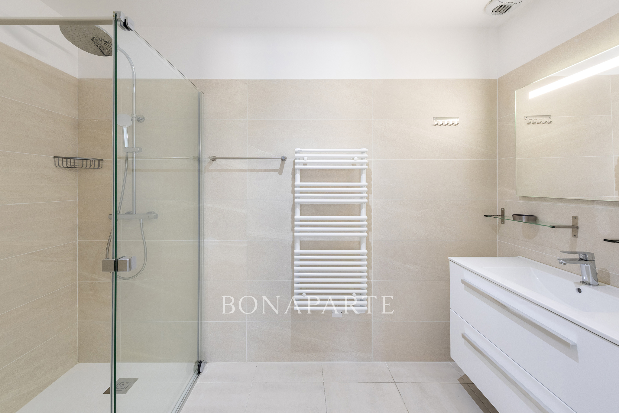 Situé dans une résidence intimiste de seulement 8 appartements, il dispose d'une grande pièce de vie équipée d'une cuisine ouverte, le tout donnant sur le jardin ; de deux grandes chambres avec chacune sa salle de douche, et d'un toilette indépendant.