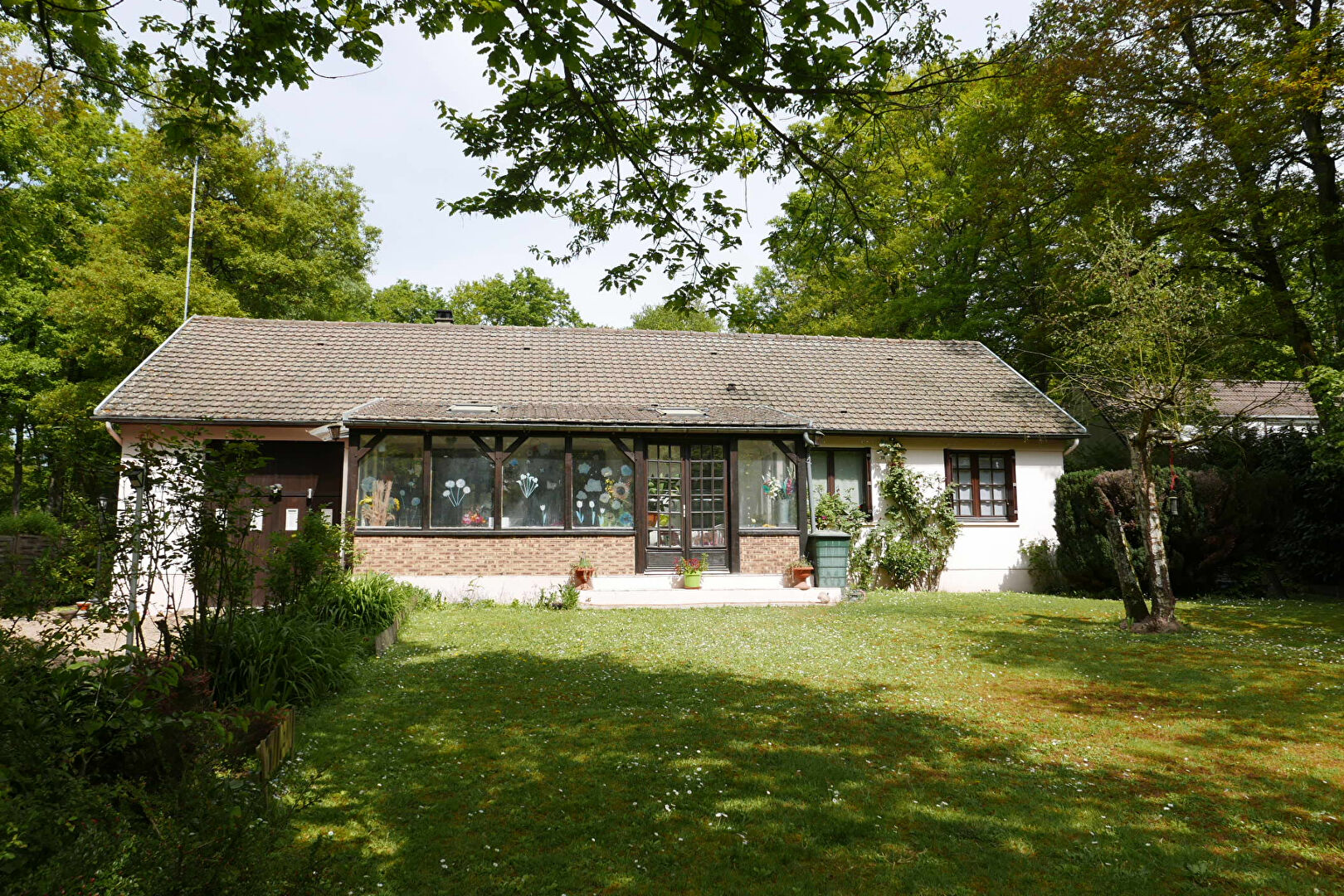A seulement 10 minutes de Maintenon ? et de la gare, cette jolie maison de plain-pied est située dans un village agréable et résidentiel avec écoles ??? et services périscolaires. Elle se compose d'une grande véranda lumineuse, d'une entrée desservant une cuisine aménagée et équipée, d'un beau séjour-salon en L avec cheminée insert ?, de trois chambres avec placards, d'une salle d'eau avec double vasque et d'un WC indépendant. Un grand garage ? pouvant accueillir deux véhicules