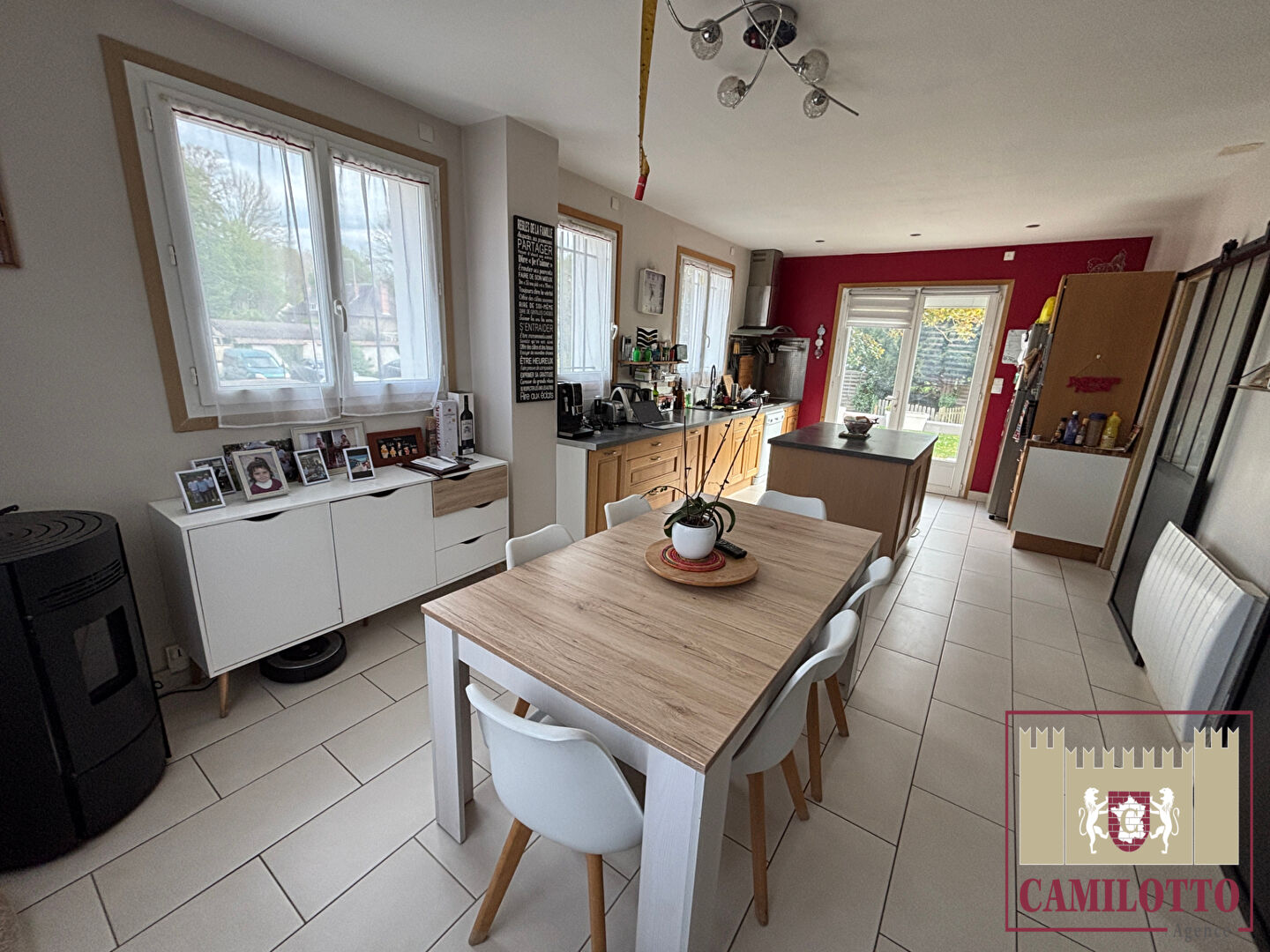 Venez découvrir en exclusivité cette charmante maison située sur un terrain d'environ 900 m², offrant de beaux volumes, de nombreuses prestations et un cadre de vie idéal pour toute la famille. Au rez-de-chaussée : - Une entrée accueillante - Un vaste salon-séjour lumineux avec poêle à bois, parfait pour vos soirées cocooning - Une cuisine aménagée et équipée avec poêle à granulés, Une chambre possible de plain pied. - Une salle de douche avec WC Au premier étage : - Un palier desservant trois belles chambres, dont une avec des rangements intégrés - Une salle de bains avec WC - Un dressing Au deuxième étage : - Un palier distribuant deux chambres supplémentaires, idéales pour les enfants, un bureau ou des invités. Un Sous-sol total : - Espace atelier - Buanderie A l'extérieur : - Un terrain d'environ 900 m² - Trois garages extérieurs Une dépendance comprenant une grande salle avec un coin cuisine : idéale pour recevoir, pour aménager un espace de loisirs ou pour envisager un projet annexe (studio, bureau, etc.). Une maison fonctionnelle, chaleureuse et idéalement située proche des commerces, des écoles et des commodités, à découvrir sans tarder ! Pour plus d'informations ou organiser une visite, contactez nous dès maintenant ! (4.17 % honoraires TTC à la charge de l'acquéreur.)