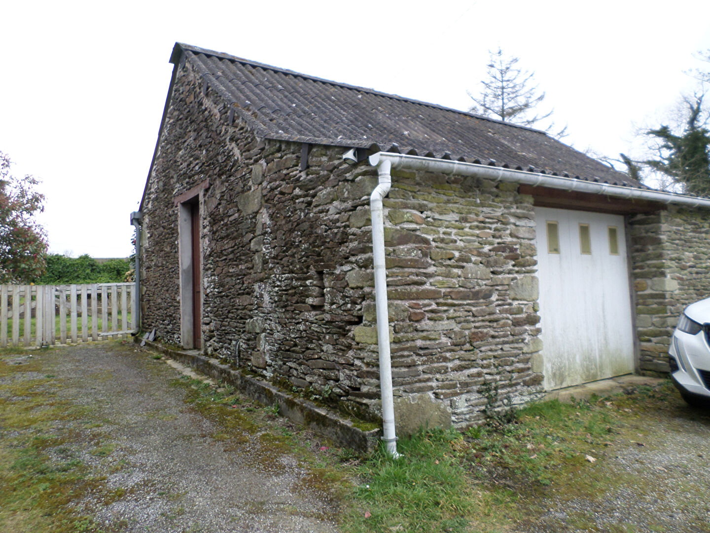 En campagne, maison de plain-pied composée d'un séjour, une cuisine indépendante, 2 chambres, salle d'eau, wc, un grenier aménageable, jardin, dépendance en pierre, un garage, l'ensemble sur 622 m². (9.00 % honoraires TTC à la charge de l'acquéreur.)