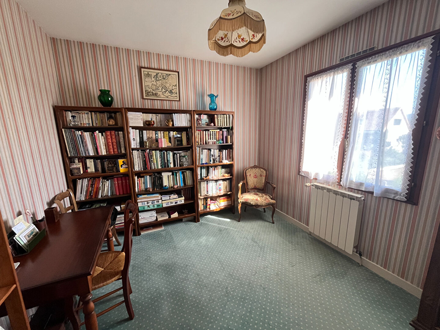 SAINT BENOIT, proche Grand Frais / La Varenne. Idéalement située, proche des commodités, des bus de ville et des écoles, cette lumineuse maison de bonne construction vous offre une surface habitable de 155 m² sur un magnifique terrain clos paysagé et arboré (fruitiers) de 870 m². Entrée avec une niche murale, salon-séjour de 32 m² ouvrant sur la terrasse carrelée récemment (store électrique) et cheminée foyer ouvert, une cuisine aménagée, wc, une salle d'eau, 4 chambres (à ce jour 3 car 2 chambres ont été réunies pour en faire une de 20 m²) ; en rez de jardin (logement indépendant possible) : une cuisine d'été-buanderie, une chambre avec salle d'eau et wc, un bureau ; garage de 60 m², coin cave. Ravalement propre de 2011, chaudière gaz de ville 2019, terrasse 2021, tout à l'égout, double vitrage bois et volets bois. Fonctionnelle, en bon état et bien placée. En EXCLUSIVITE et à visiter sans tarder avec Vincent Giraud, agent immobilier de l'agence Labell depuis 2001. (5.93 % honoraires TTC à la charge de l'acquéreur.)